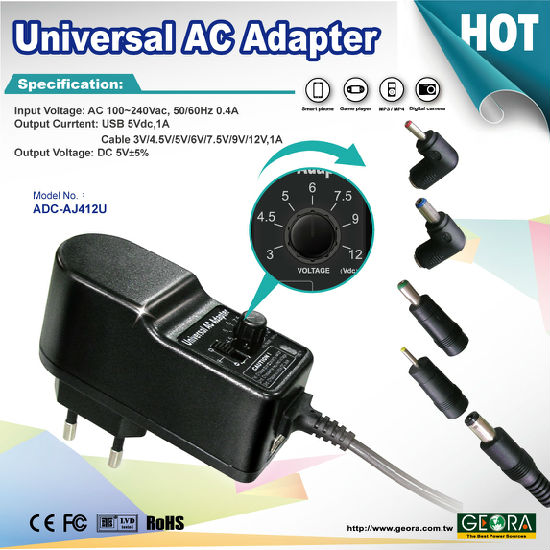 • Cable 3V/4.5V/5V/6V/7.5V/9V/12V, 1A
