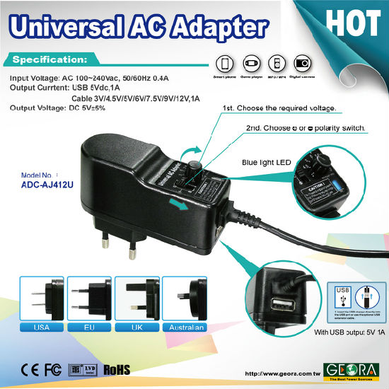 • With USB output 5V 1APlug with USA/EU/UK/Australian