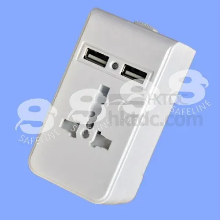 Traverl universal adapter, availabel country: England, German, America, with 2 USB recharger, LED color from red to green, displayed the power from empty to full, USB input AC110-230V~50-60Hz, USB output DC5V ±5%, Max output current 1000mA, Max: 1500W