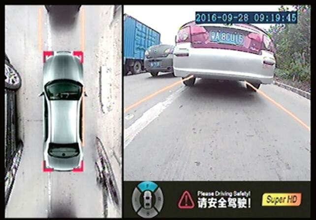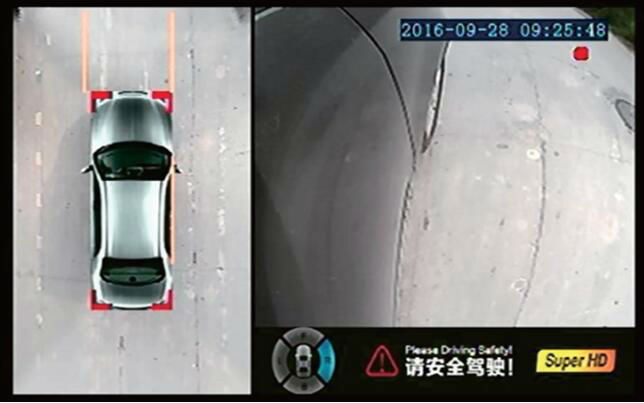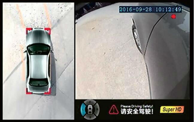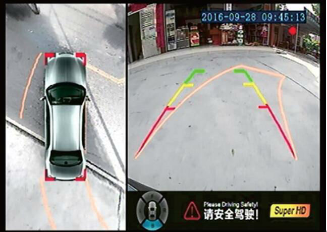 Extra wide angle cameras at front, rear, left and right side, collecting images around the car to form a 360°bird-view image by image software tool and splicing technology, then sending the images to the SZM display equipment.