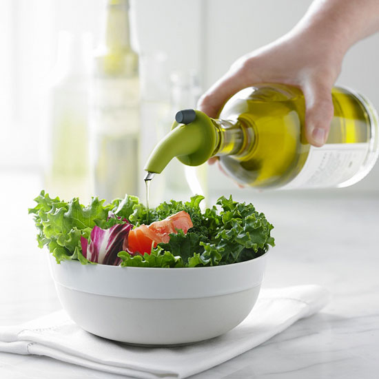 Trudeau’s new universal oil spout makes cooking clean and easy. The patent-pending dripless design allows users to pour oils without the risk of drips and spills. Fluids pass smoothly through the slender, elegant spout, which curves away from the bottle, creating a funnel through which the liquid can be poured onto pasta, sprinkled onto salads, or drizzled onto dishes. The removable graduated silicone stopper fits almost any bottle, eliminating the need to transfer messy oil between containers. Just affix the spout to the top of the bottle and, voila, you are all set!