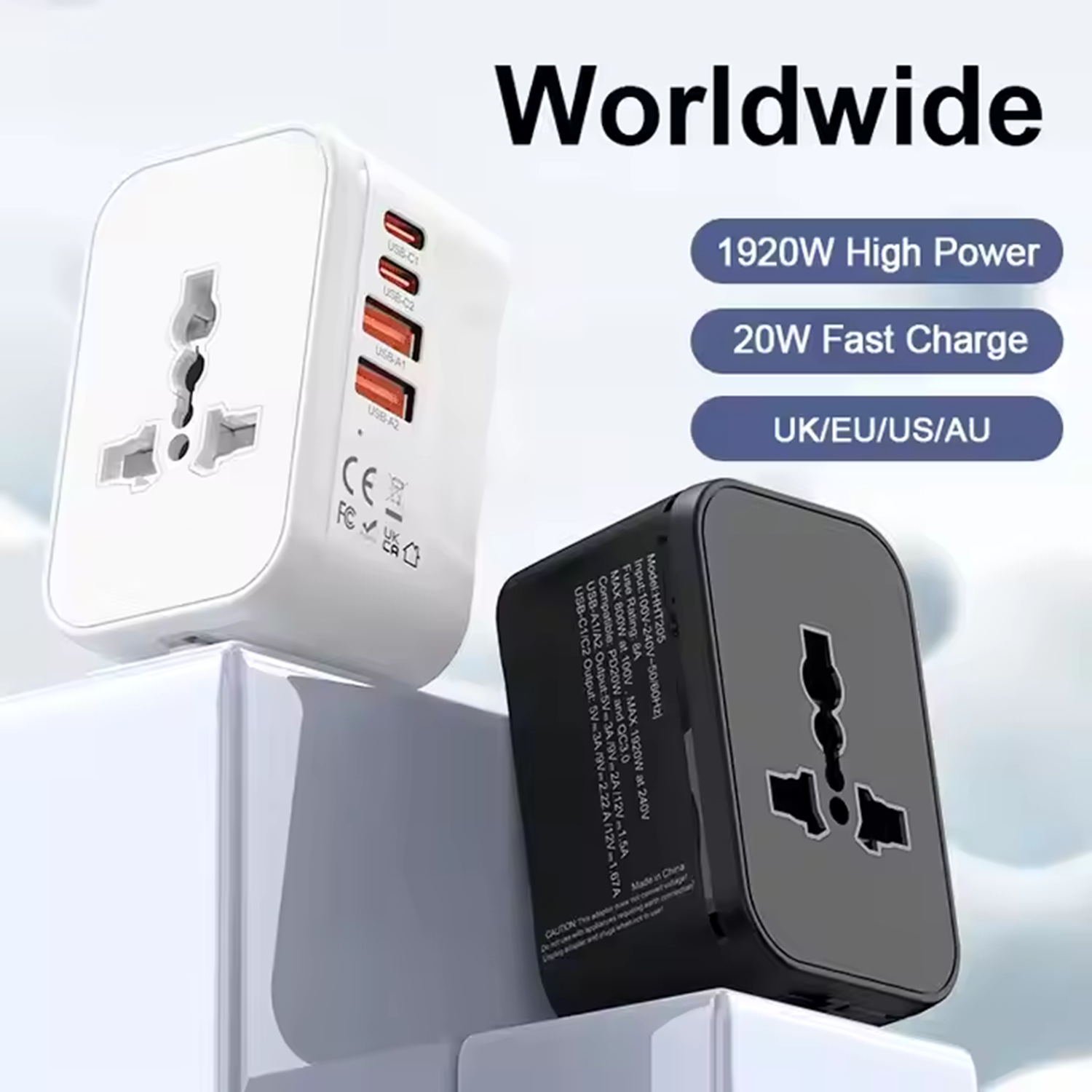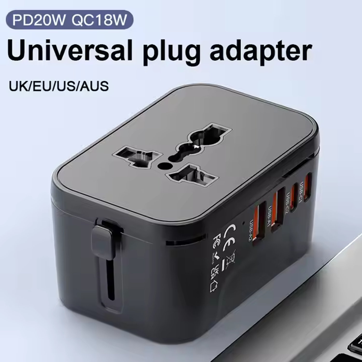 Universal Travel Adapter with 2 USB A and 2 Type C