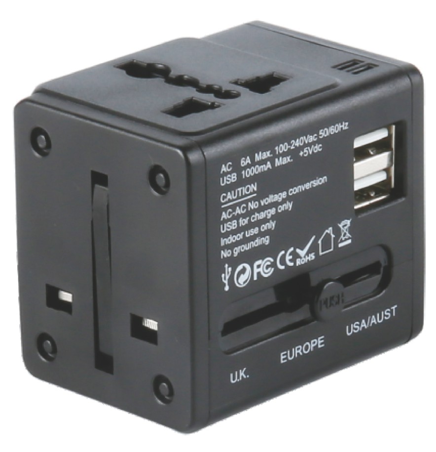 Compact, self-contained unit includes the four most common plug configurations fits electric wall outlets in over 150 countries, including most parts of Africa, Asia, Europe, and the Middle East, Australia, New Zealand, North America, and Russia