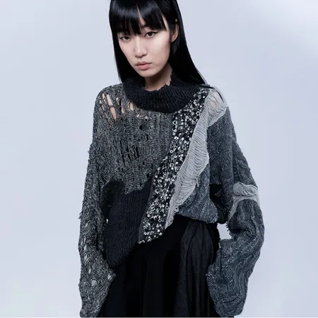 Upcycled contour line inspired oversized beaded sweater, upcycled from headstock sweater is one of a kind.