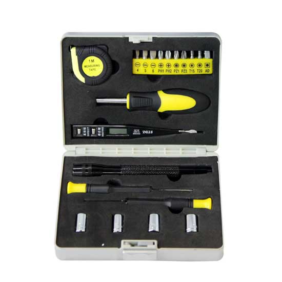 Available is a utensil set flaunting a comprehensive design. This set includes assorted items made out of carbon steel. The items are neatly packed in a rounded rectangular box.