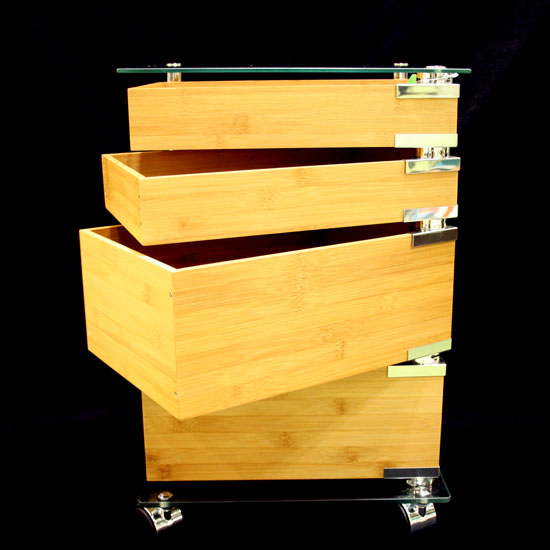 Featured here is a utility table with a movable design. The versatile drawers with a generous capacity allow flexible storage of your scattered items. The bamboo construction gives a sophisticated touch.