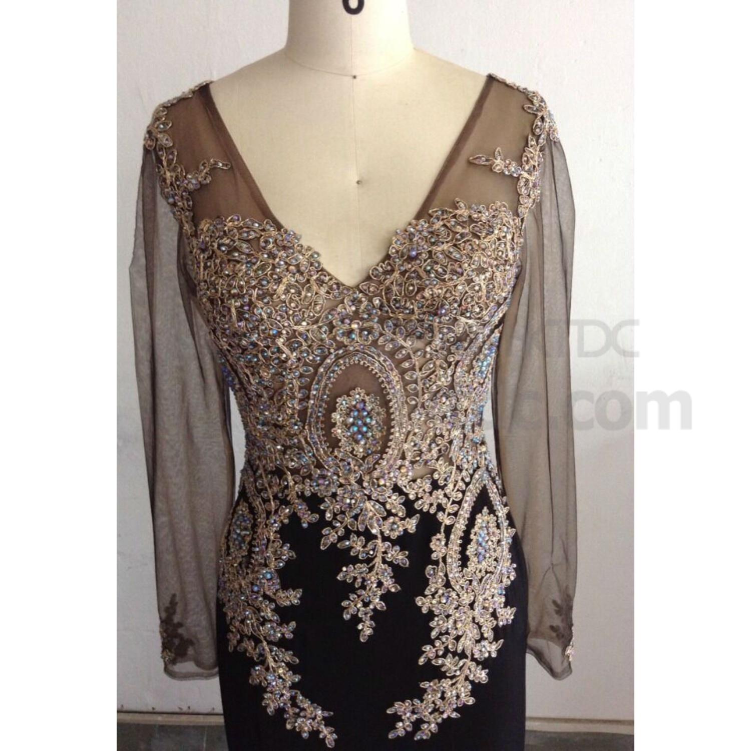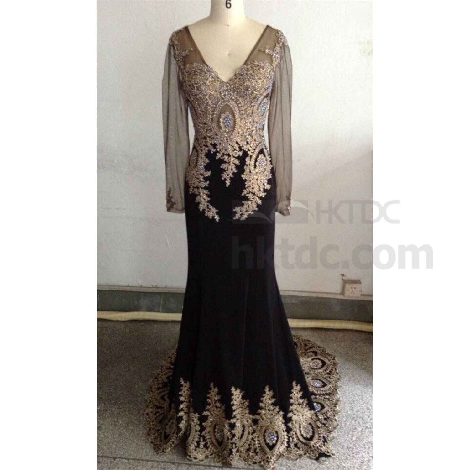 V Neckline Fitted With Pineapple Pattern On Bodice And Hem Prom Dress