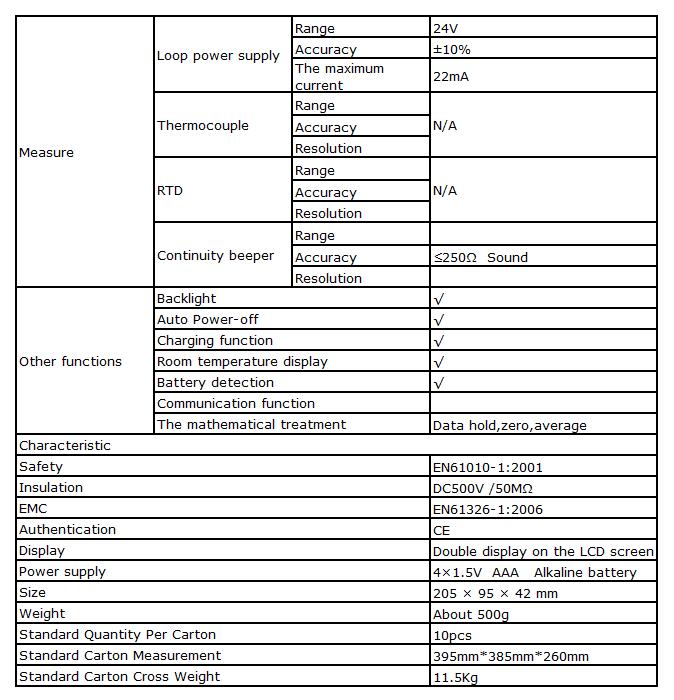 The measurement function: DC voltage, ohm, thermocouple, thermal resistance, on-off measurement