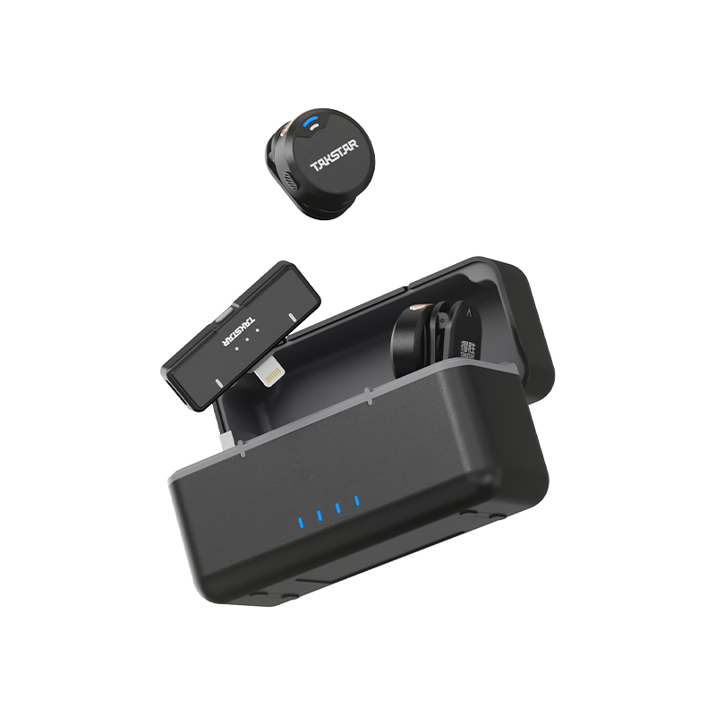 TX Transmitter • Frequency Response: 50Hz - 18kHz • Frequency Range: 2.4GHz AFH • Modulation Mode: GFSK • Sampling Rate: 48kHz • Bit Depth: 16bit • Sensitivity: -39 ± 2dB • Mic Polar Pattern: Omnidirectional • Maximum SPL: 114dB SPL • Signal-to-Noise Ratio: >65dB • Battery Capacity: 70mAh • Operating Range: Approx. 100m • Charging Time: Approx. 2 hours • Usage Time: Approx. 7 hours • Weight: Approx. 7.5g RX Receiver • Frequency Response: 50Hz - 18kHz • Frequency Range: 2.4GHz AFH • Modulation Mode: GFSK • Sampling Rate: 48kHz • Bit Depth: 16bit • Operating Current: 24mA • Weight: Approx. 6g Charging Case • Charging Input: 5V / 0.5A • Battery Capacity: 500mAh • Charging Time: Approx. 2 hours • Supported Charges for TX: 3 full charges • Weight: Approx. 120g Note: The above data are measured by Takstar laboratory which has the finalinterpretation right!