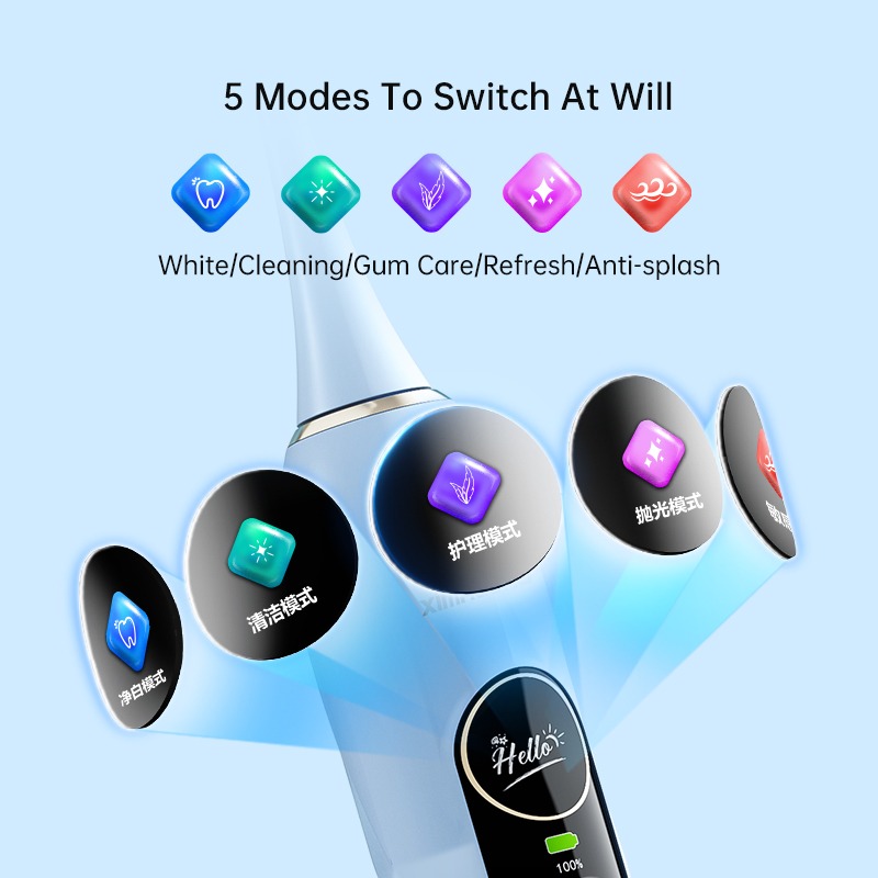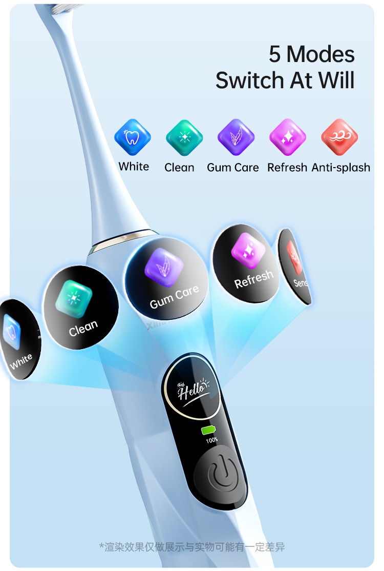 Upgrade your brushing experience with the V3 Electric Toothbrush, designed for precision, comfort, and efficiency. Featuring a smart LED display, this toothbrush allows easy selection between 5 brushing modes (Clean, White, Polish, Gum Care, and Sensitive), catering to your unique oral care needs.