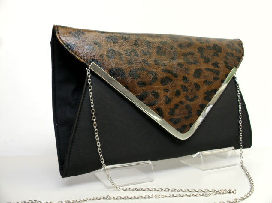 • Leopard PVC with plain PVC envelope clutch bag.