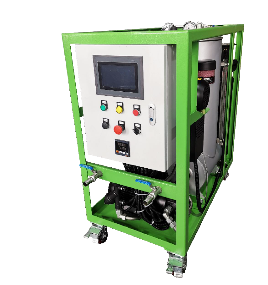 This is a miniature, light weight and cost effective design vacuum dehydration unit.It can applied directly to various types of machines reservoirs. ldeally suited forsmall volume system between 1000L to 3000L of lubricants fluid. lt dehydrate andcleans most types of oil such as lubricants fluid, hydraulic oil, transformerfluid,quenching oil and synthetic fluid. The system design is a fully automaticprocess through PLC control and only manual action is needed to emptying thecondensate and waste waterin the container.