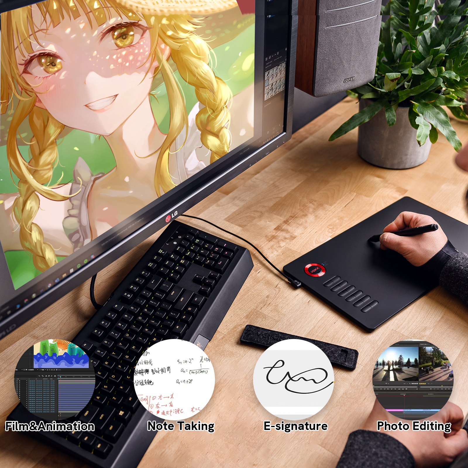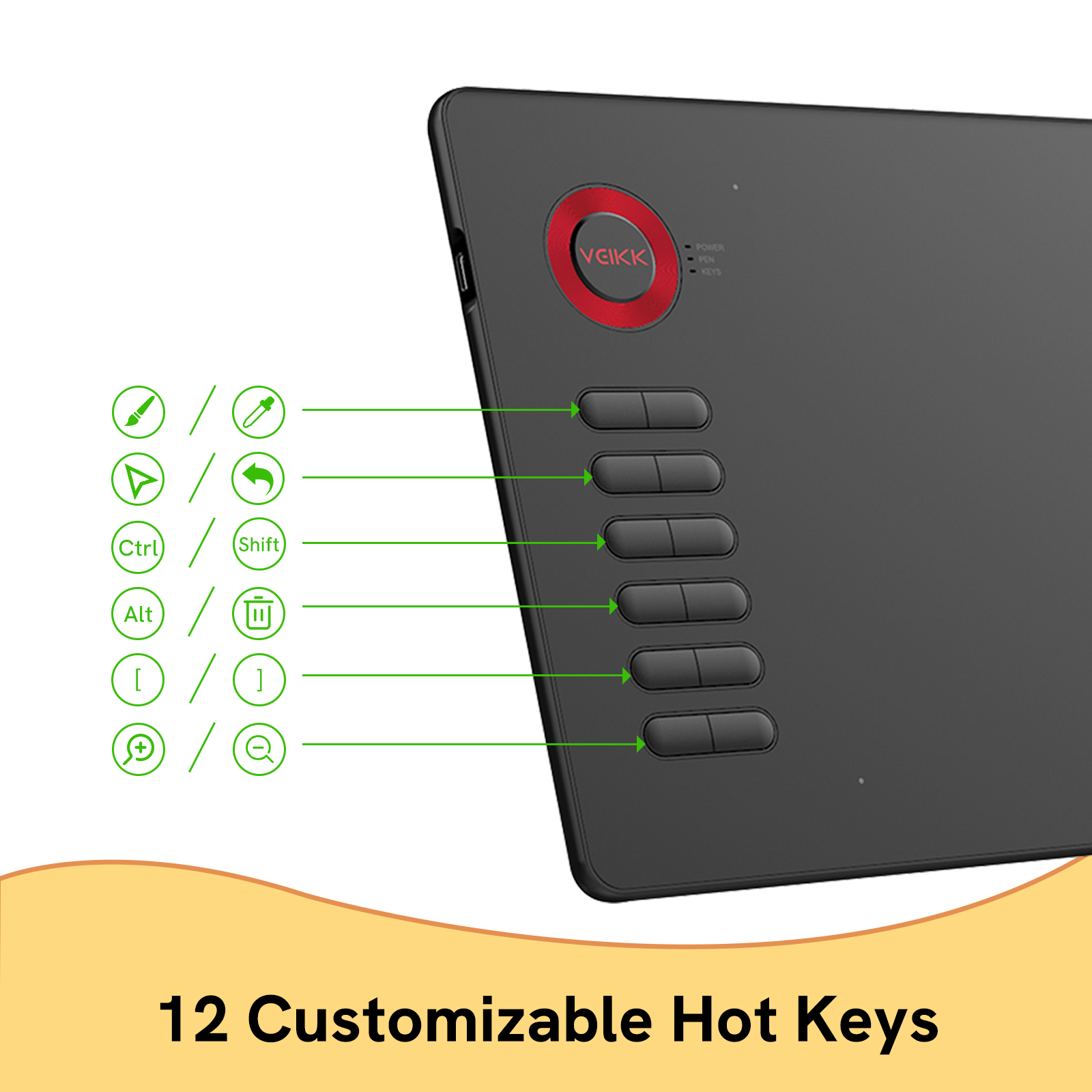 With 12 fully customizable shortcut keys and 2 pen buttons, the A15 drawing tablet creates a highly ergonomic and convenient work platform where you can customize your shortcut keys to tailor your own unique experience and increase productivity.