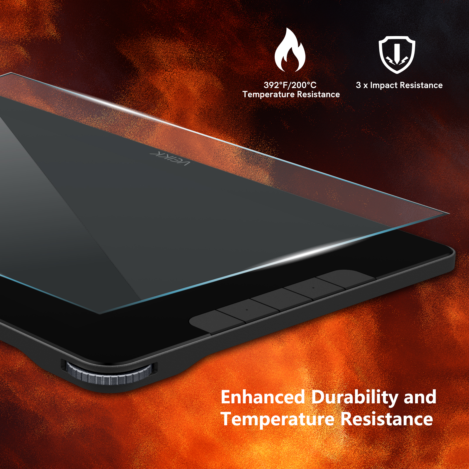 Incredibly advanced tempered glass treated through Forced-air Hardening on the Studio 16 screen. With three times the impact resistance and bending strength of regular glass, it ensures durability in demanding environments and withstands temperatures up to approximately 392°F (200°C). You don't have to worry about it getting too hot to touch from prolonged use or the screen being damaged.