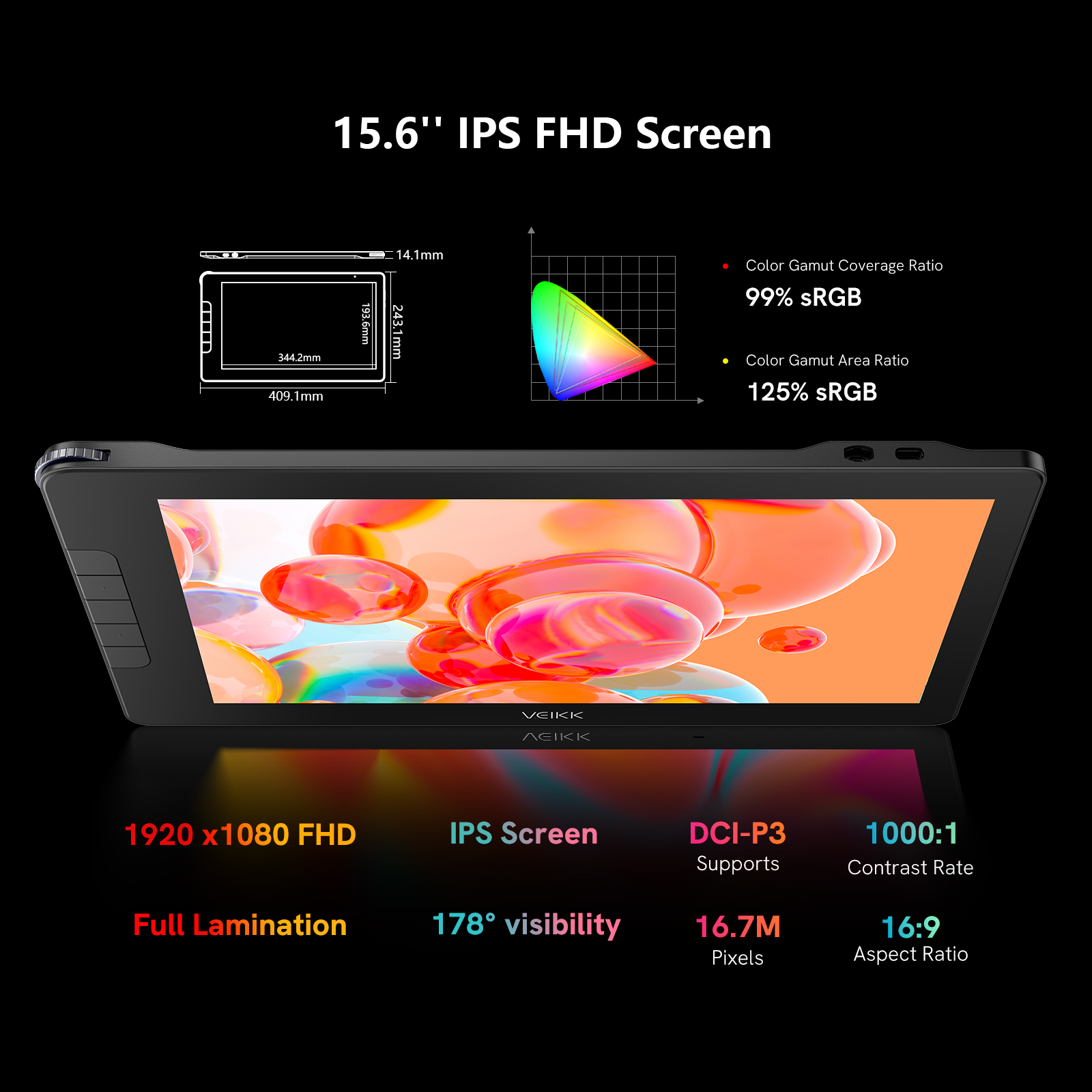 With a wide color gamut coverage ratio of 99% sRGB on a IPS FHD Full Lamination Screen, you can unleash your creativity with stunning color accuracy and detail. Every piece of content becomes a visual feast, bringing your imagination to life exactly as you envision.
