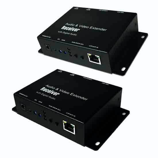This VGA and audio receiver unit features a compact design. It is capable of receiving high-resolution VGA signals and high fidelity stereo audio signals of up to 300 meters via a CAT-5 cable. It is crafted with fine details to ensure excellent performance.