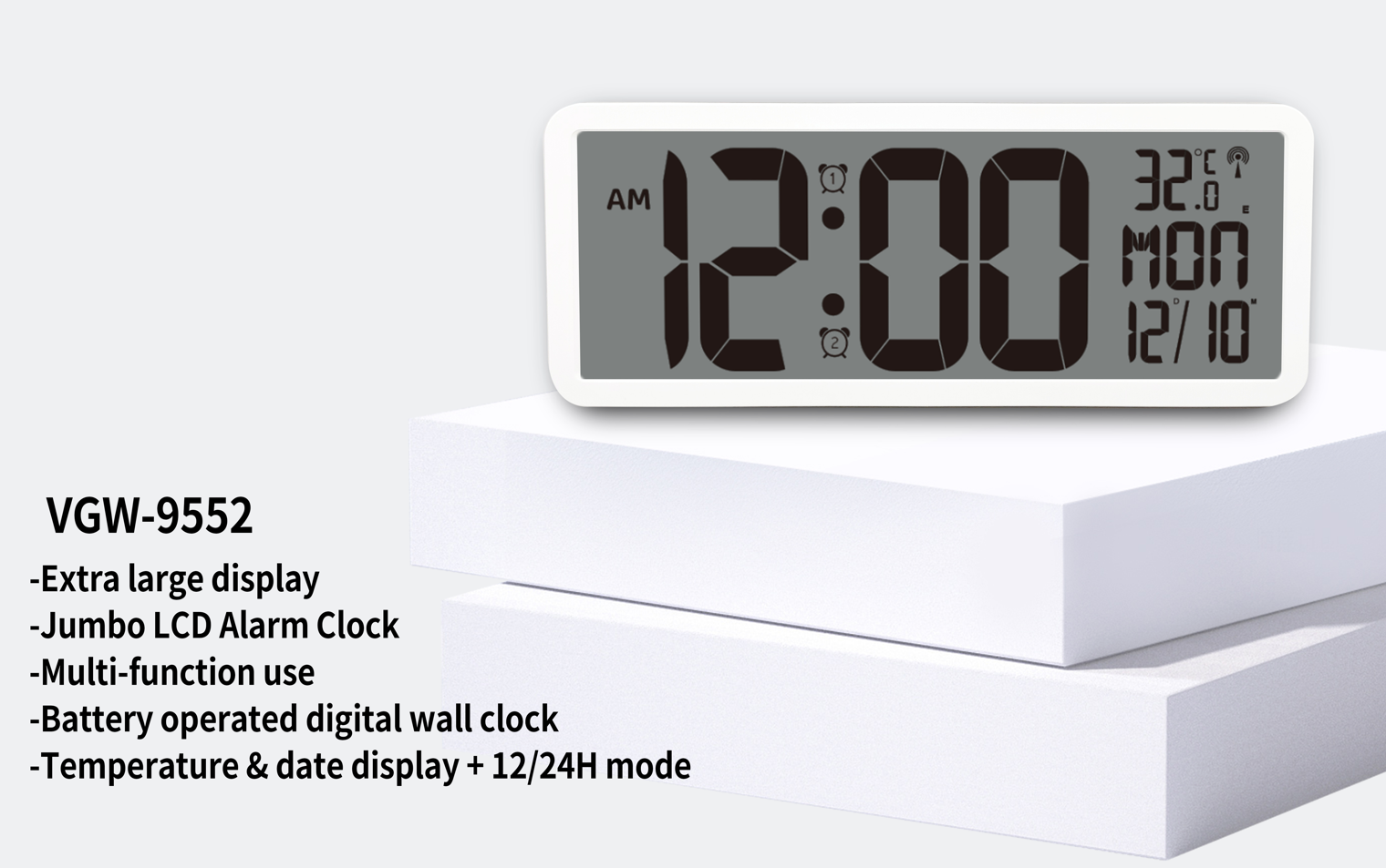 1. Normal time display 2. Temperature display 3. 2 sets of alarm clock 4. 12/24 hours transfer format 5. Radio Control available, JJY, WWVB,MSF, DCF