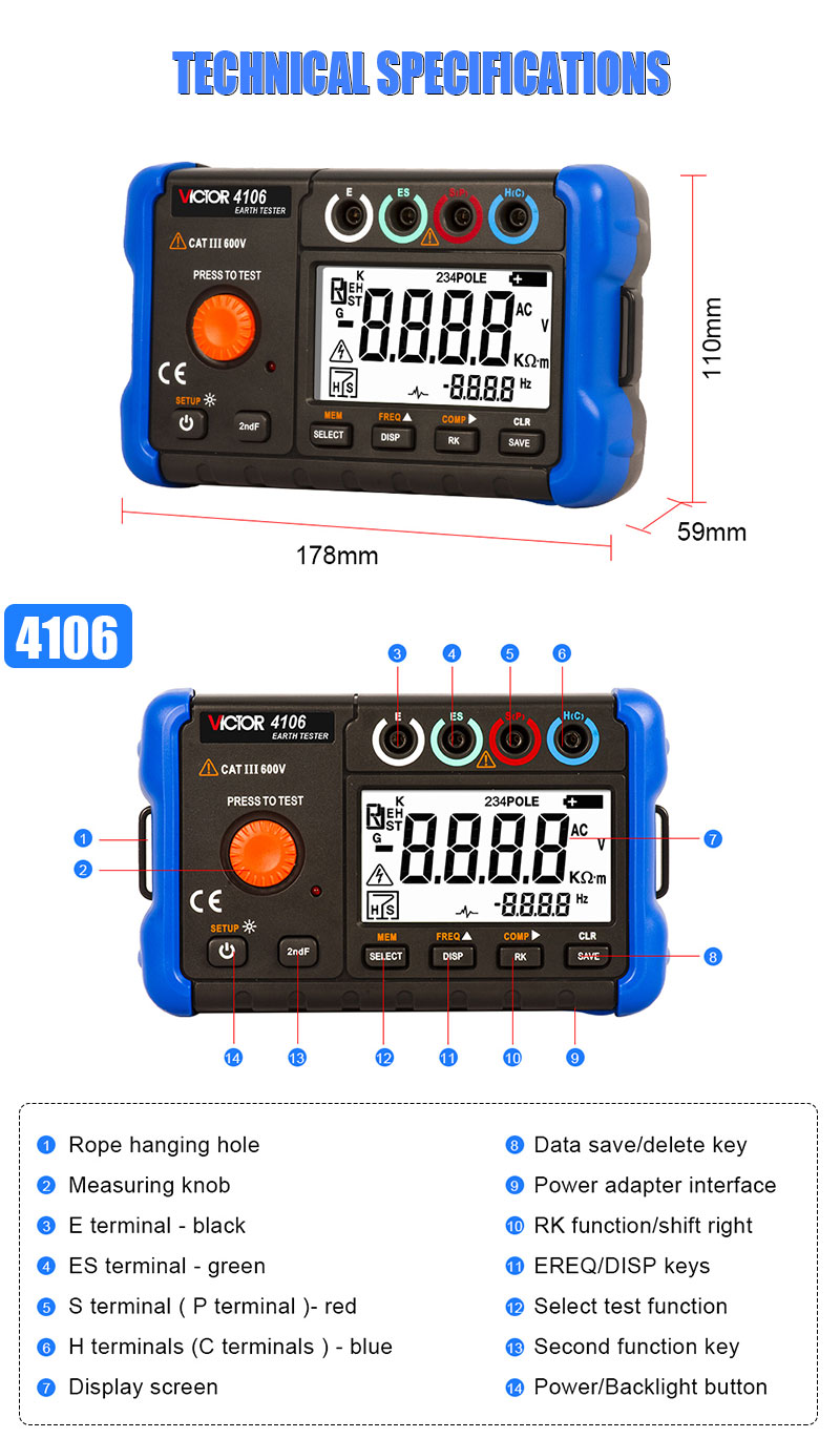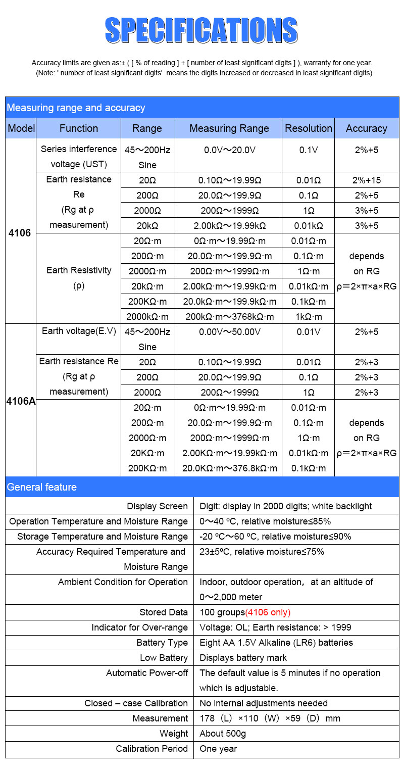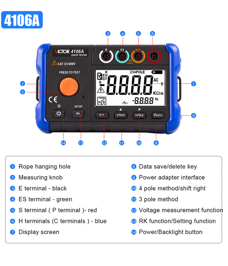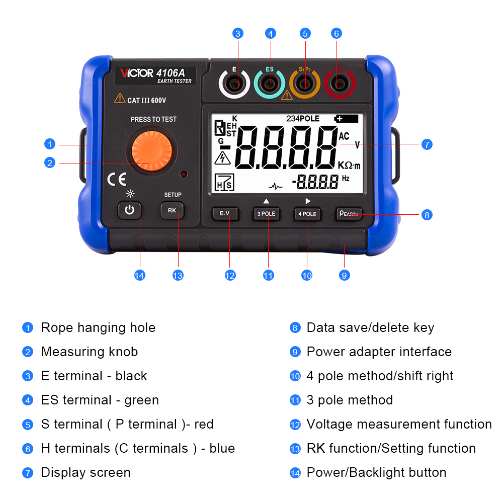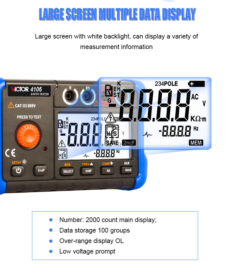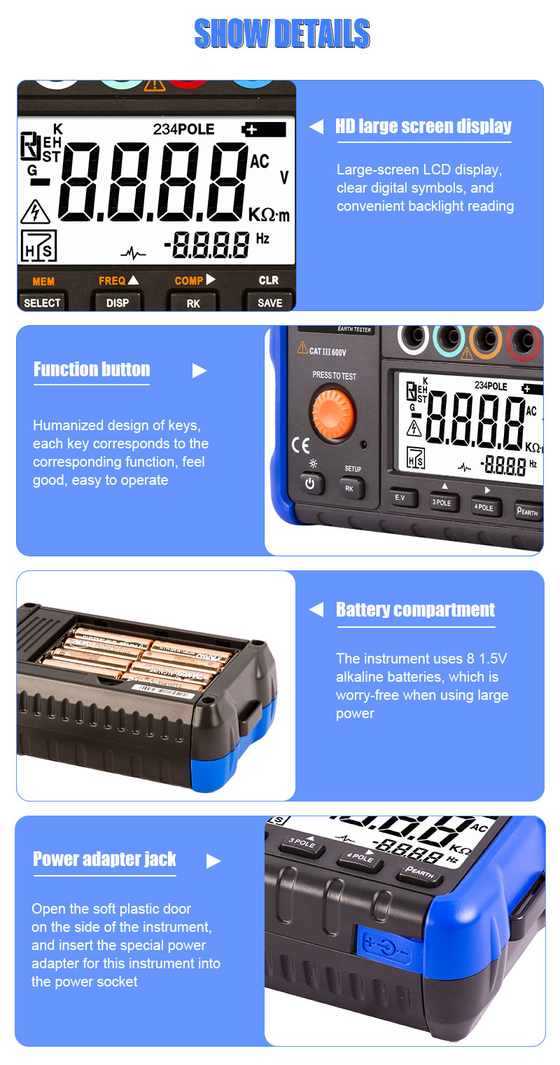 Measurement range: 0.01Ω·m~376.8KΩ·m