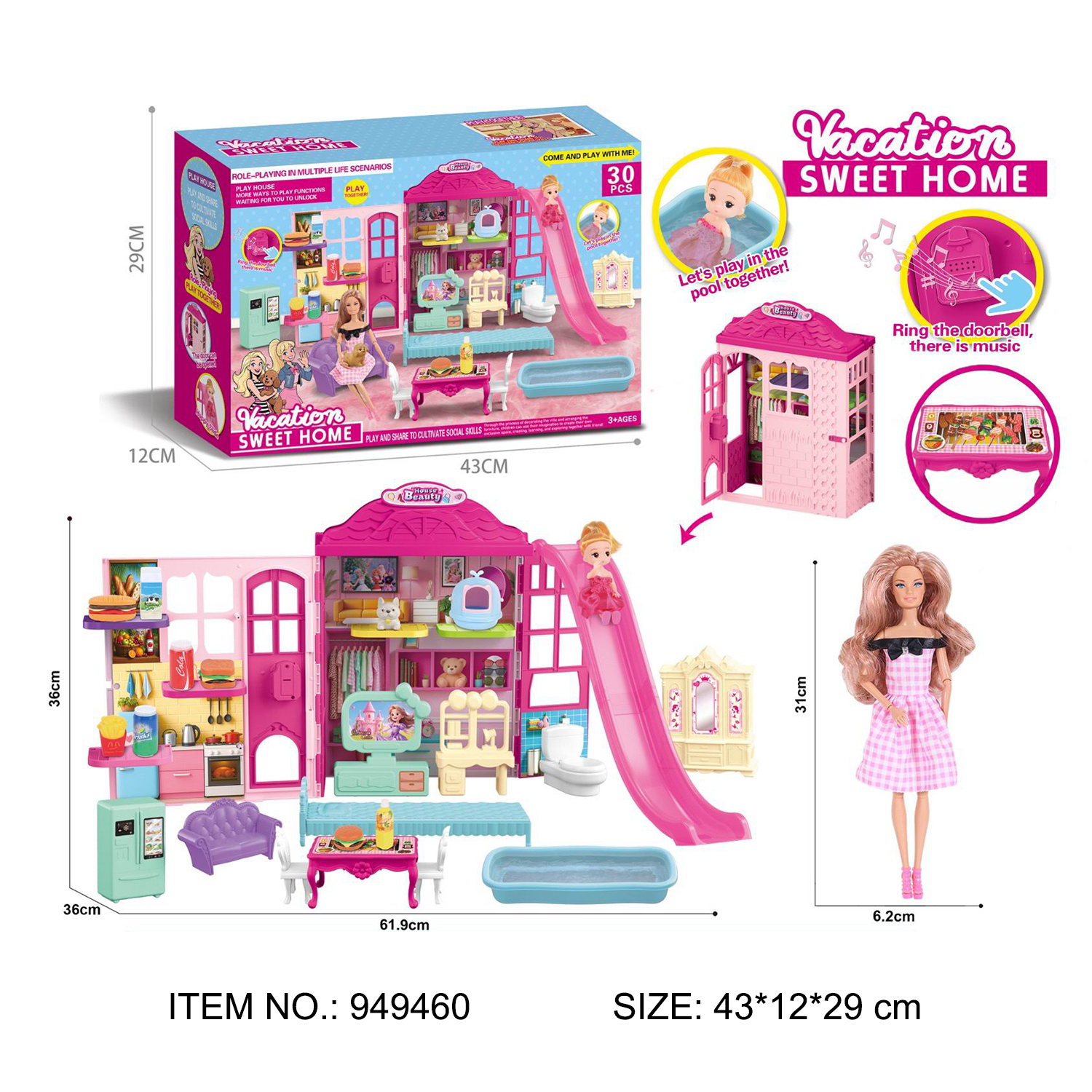 VILLA+DOLL+BELL PLAYSET,TEST REPORTS:EN71 PART1-2-3 AND PHTHALATE TEST AND EN62115 AND EN60825 AND ASTM AND HR4040 AND CPC AND PAHS .