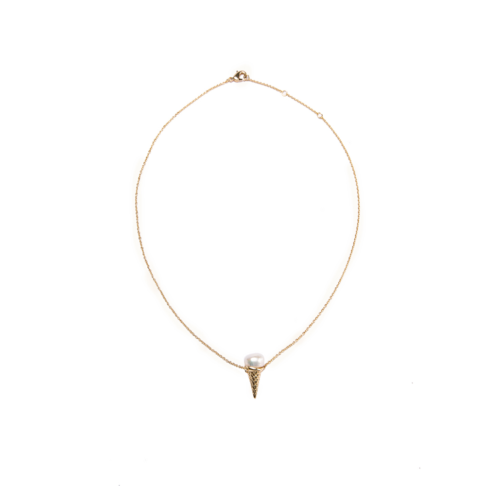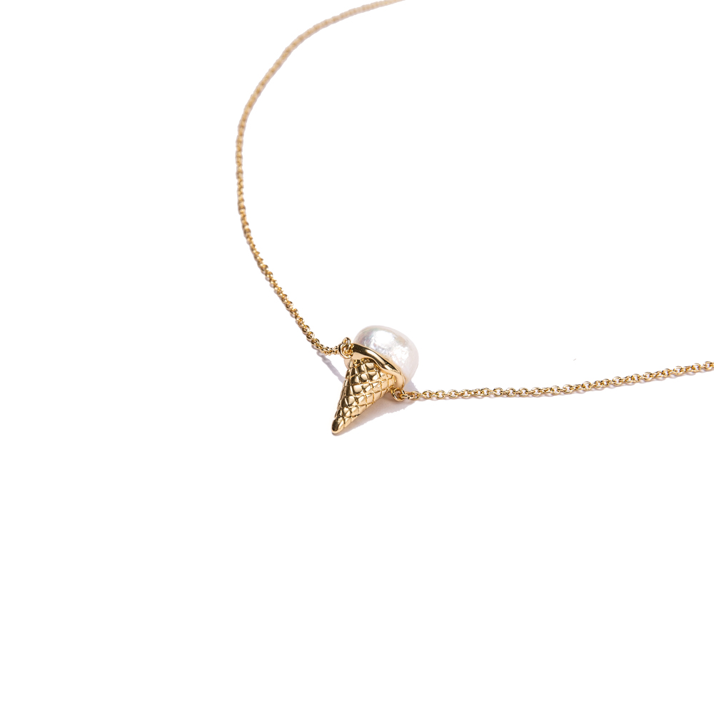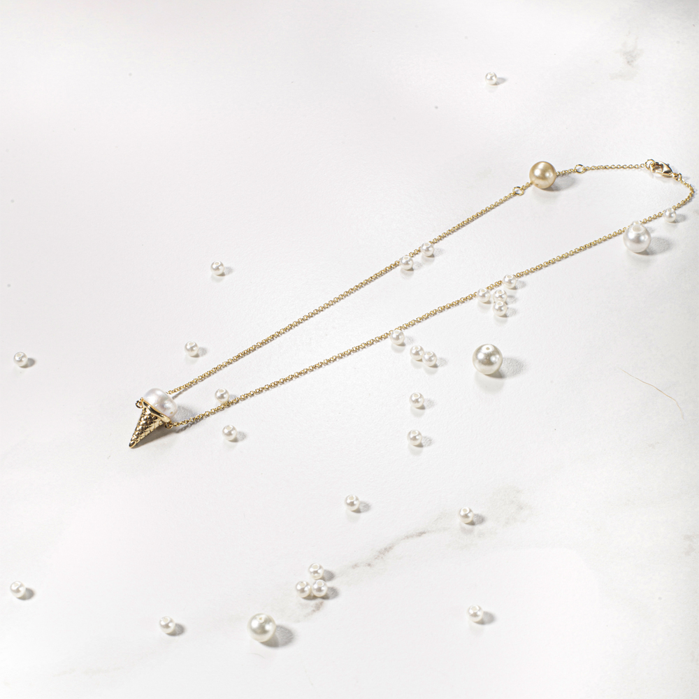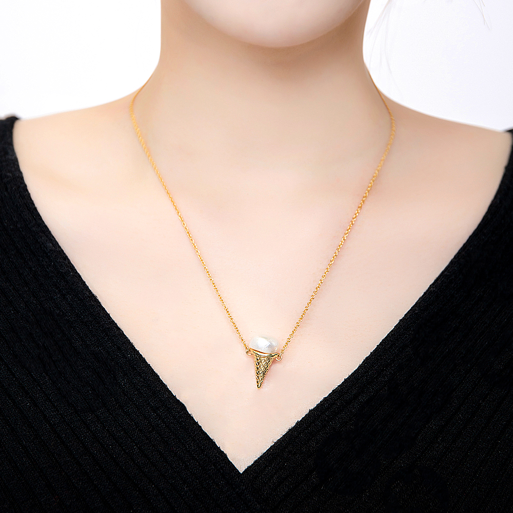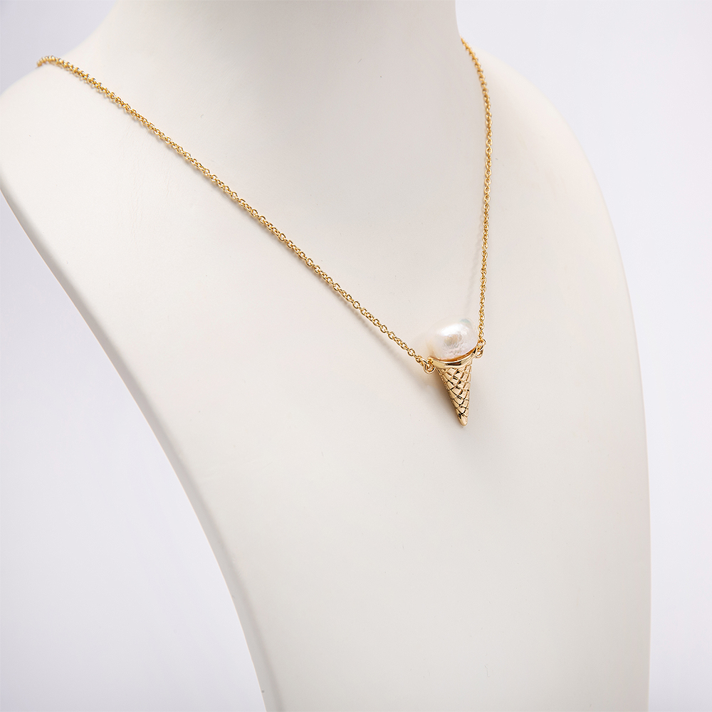 Valentine's Day Ice Cream Cone Series Fresh Water Pearl Bling Chains Brass Necklace Jewelry