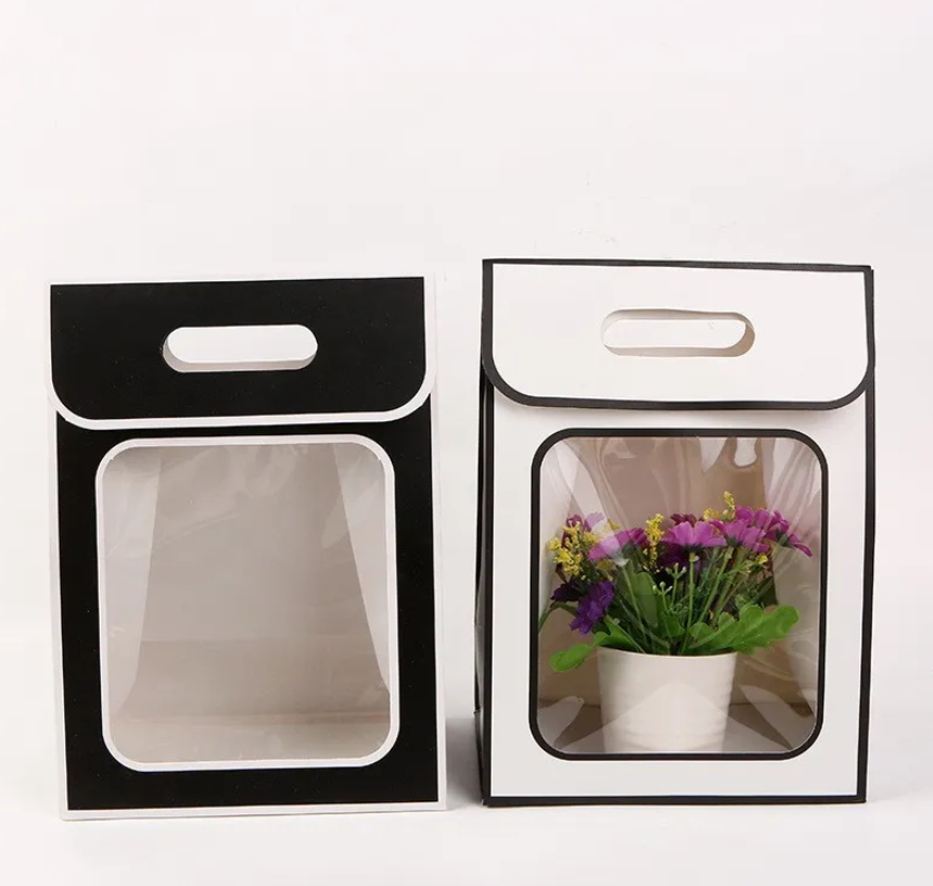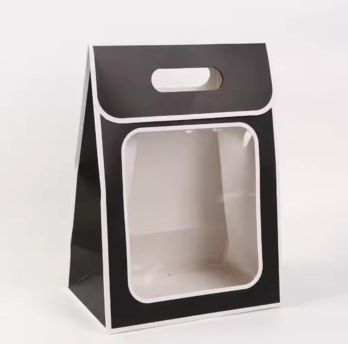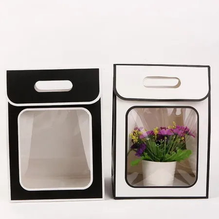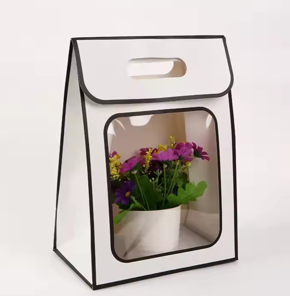 Valentine's Day Window Flip Tote Bag Creative Flowers Doll Simple Accompanying Gift Bag Made Ivory Board Paper Customizable Logo