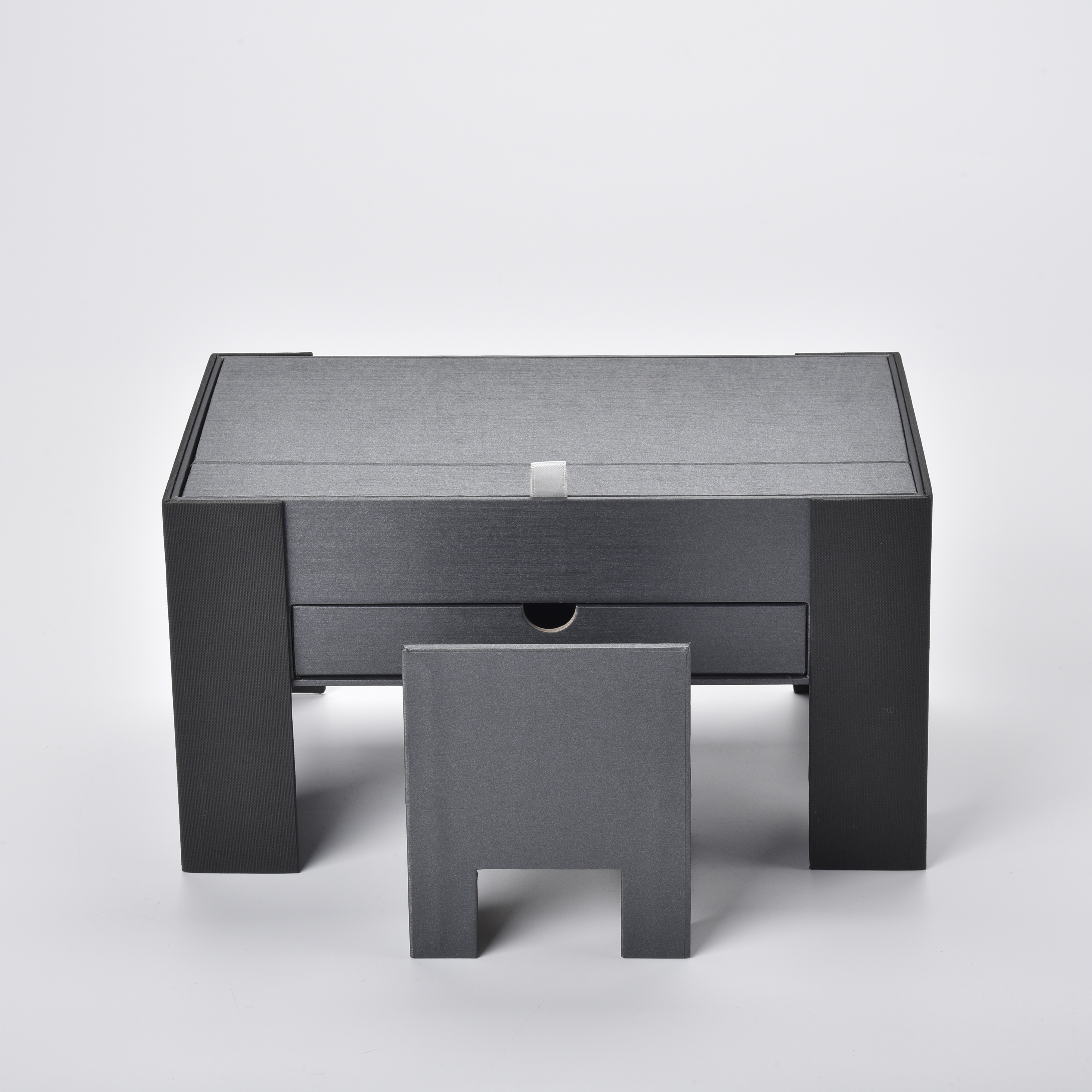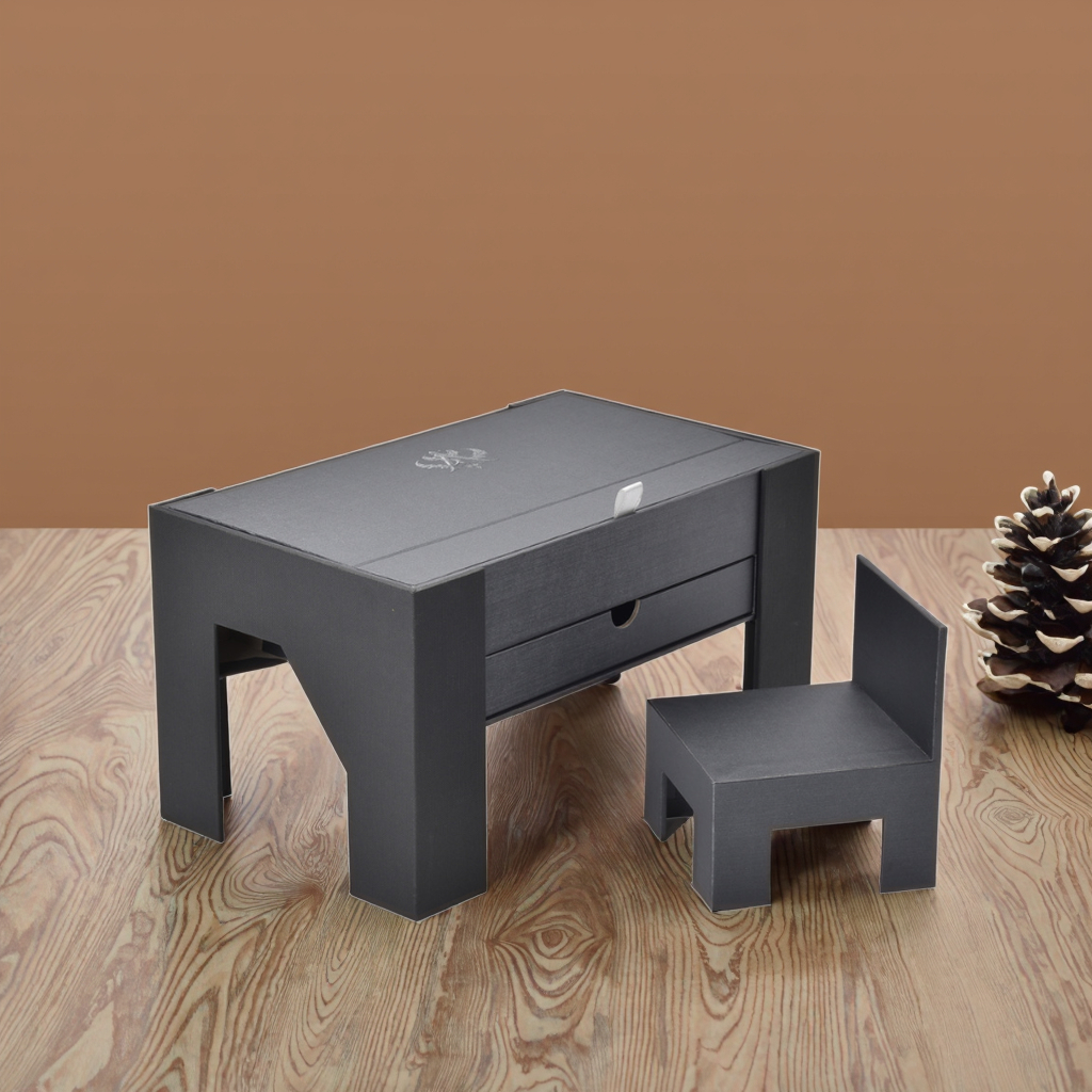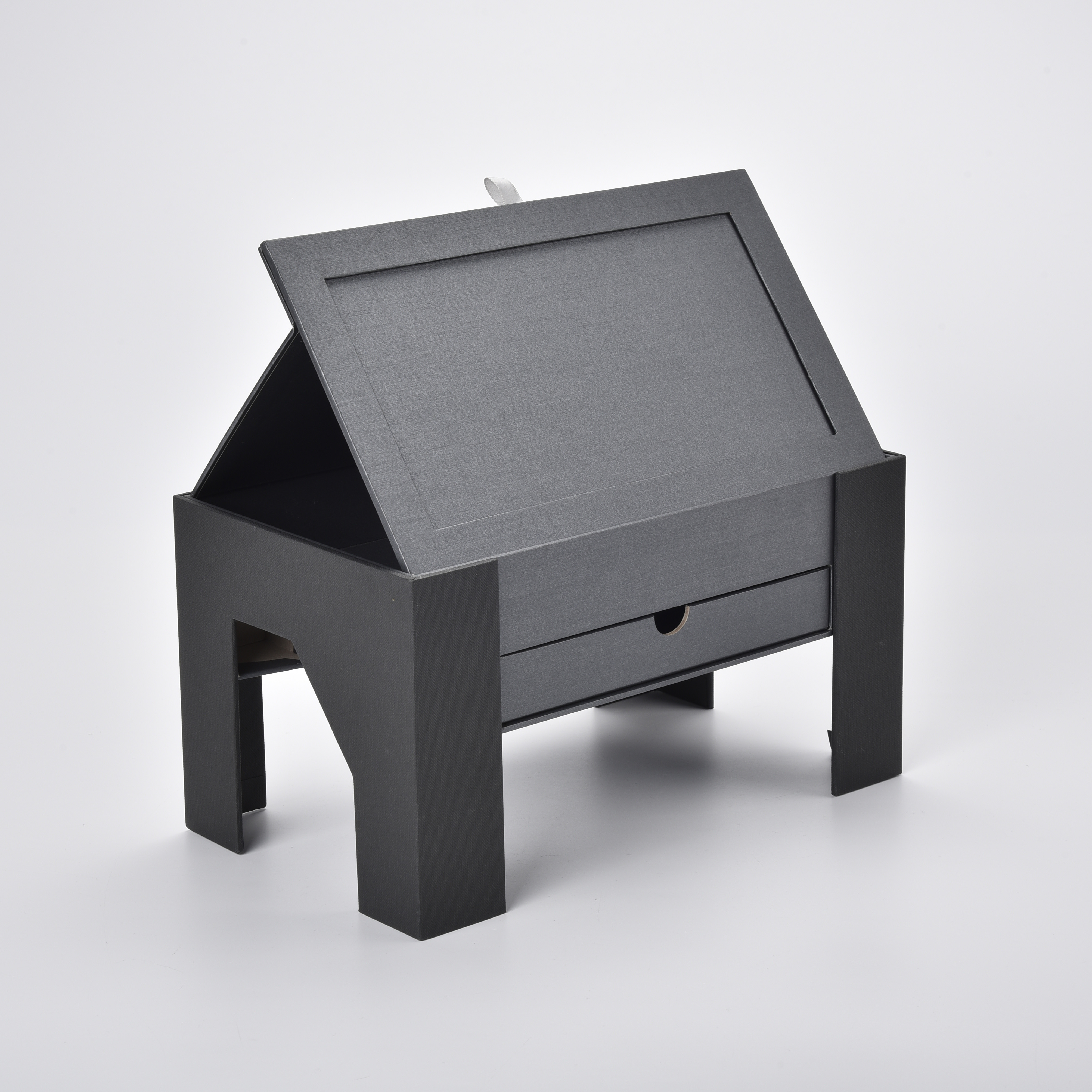 Grey board paper (300-2500gsm), with matte/pearlescent/wood grain special paper on the surface, table leg design, sturdy and full of high-end feel.