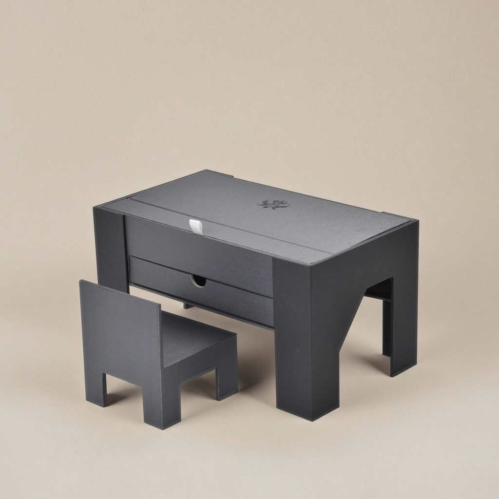 The matching paper bench (of the same color series) can be used as a jewelry tray or for pure decoration.
