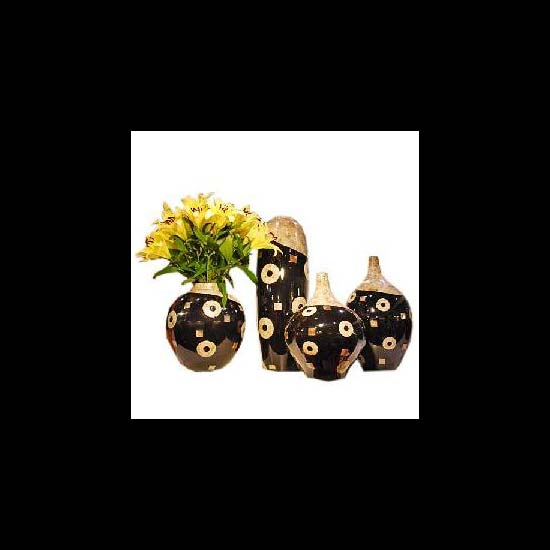 • This is a lacquer vase with beautiful black and white ivory pattern decoration