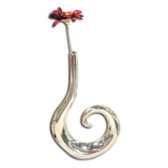 Featured is a vase made of aluminium, having a unique shape design, with a polished finish, suitable for modern homes use.