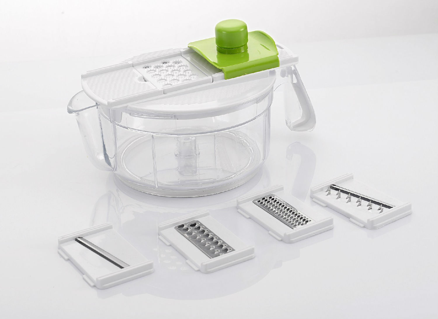Kitchen Necessity: This vegetable grater has 4 easily interchangeable square slicer blades.