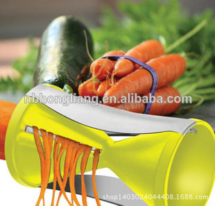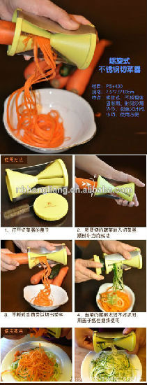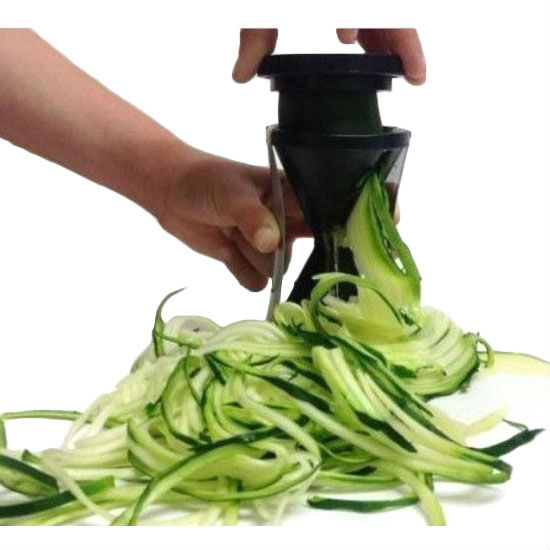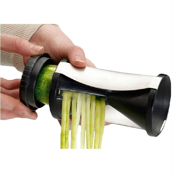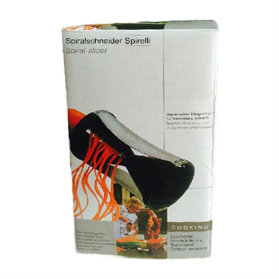With the spiral slicer you can conjure up endless Julienne strips of carrot, radish, cucumber and all kinds of other firm vegetables. The 2 x 3 mm or 3.5 x 5 mm spirals are perfect to create vegetable stir-fires or pasta dishes, and to decorate serving dishes. The combination of high-quality plastic and stainless steel means it can be cleaned simply.