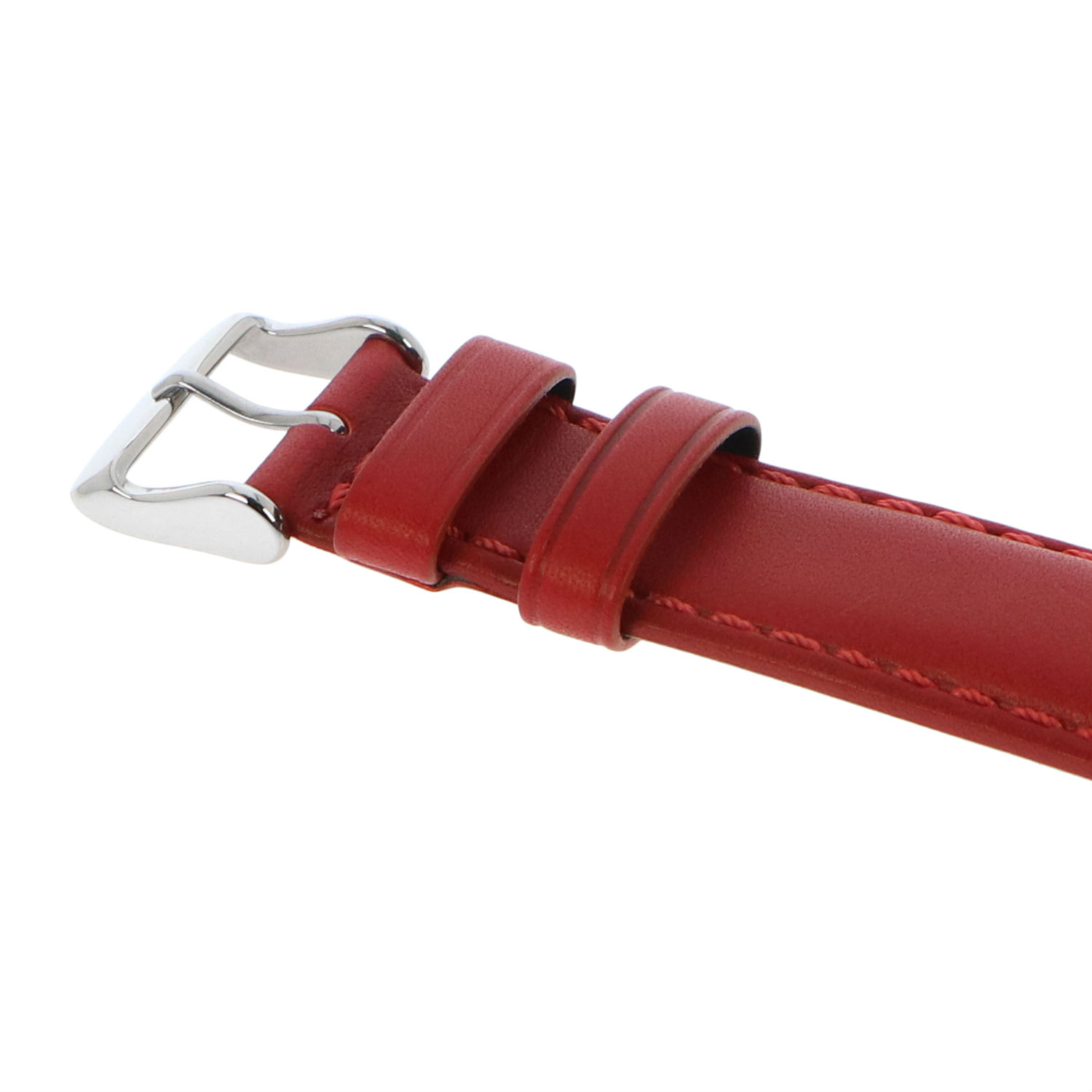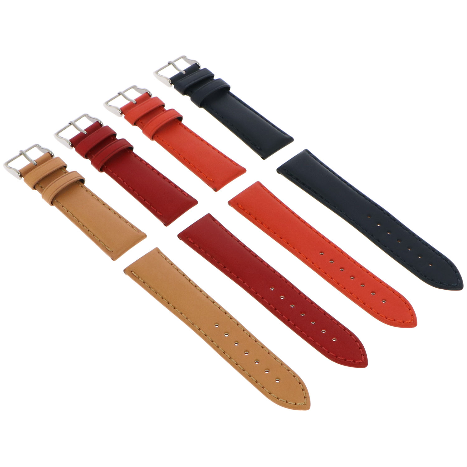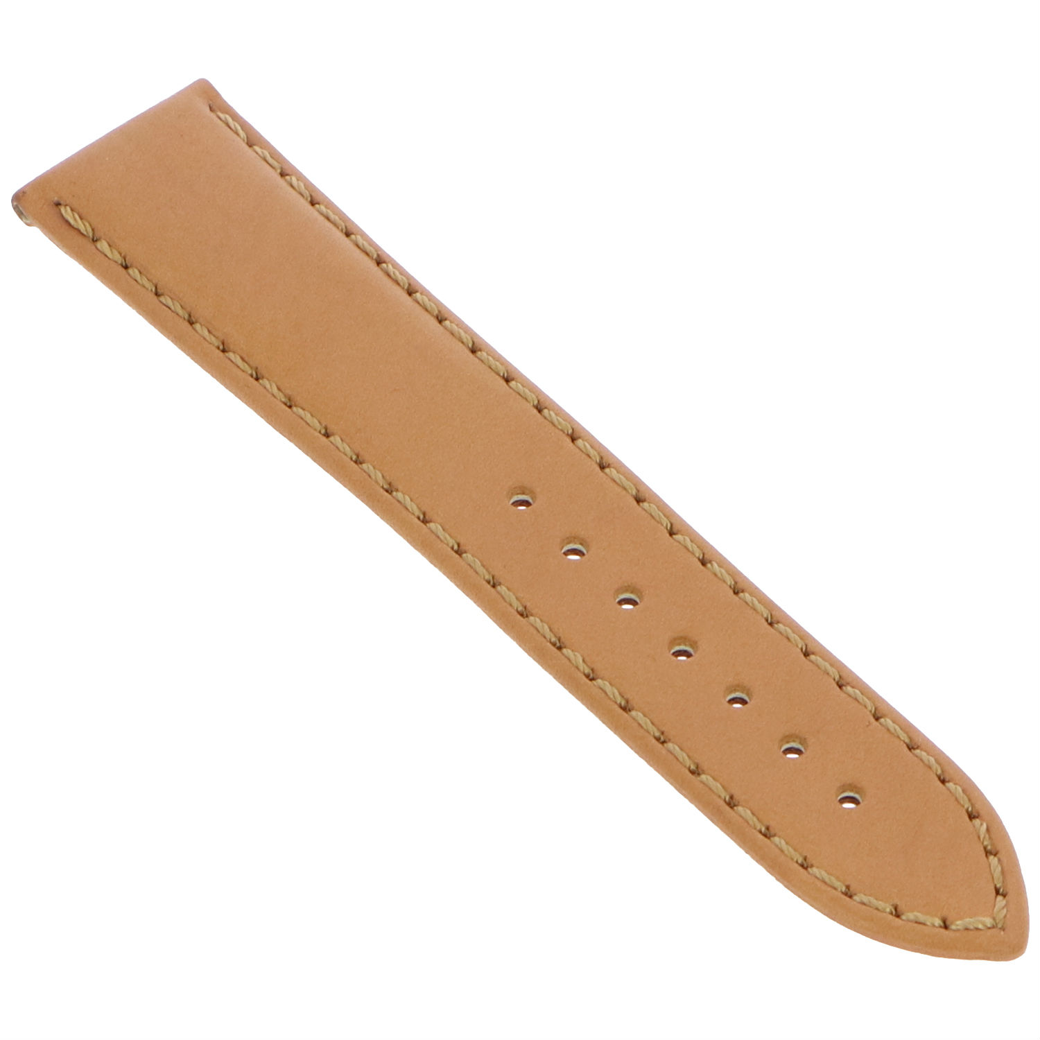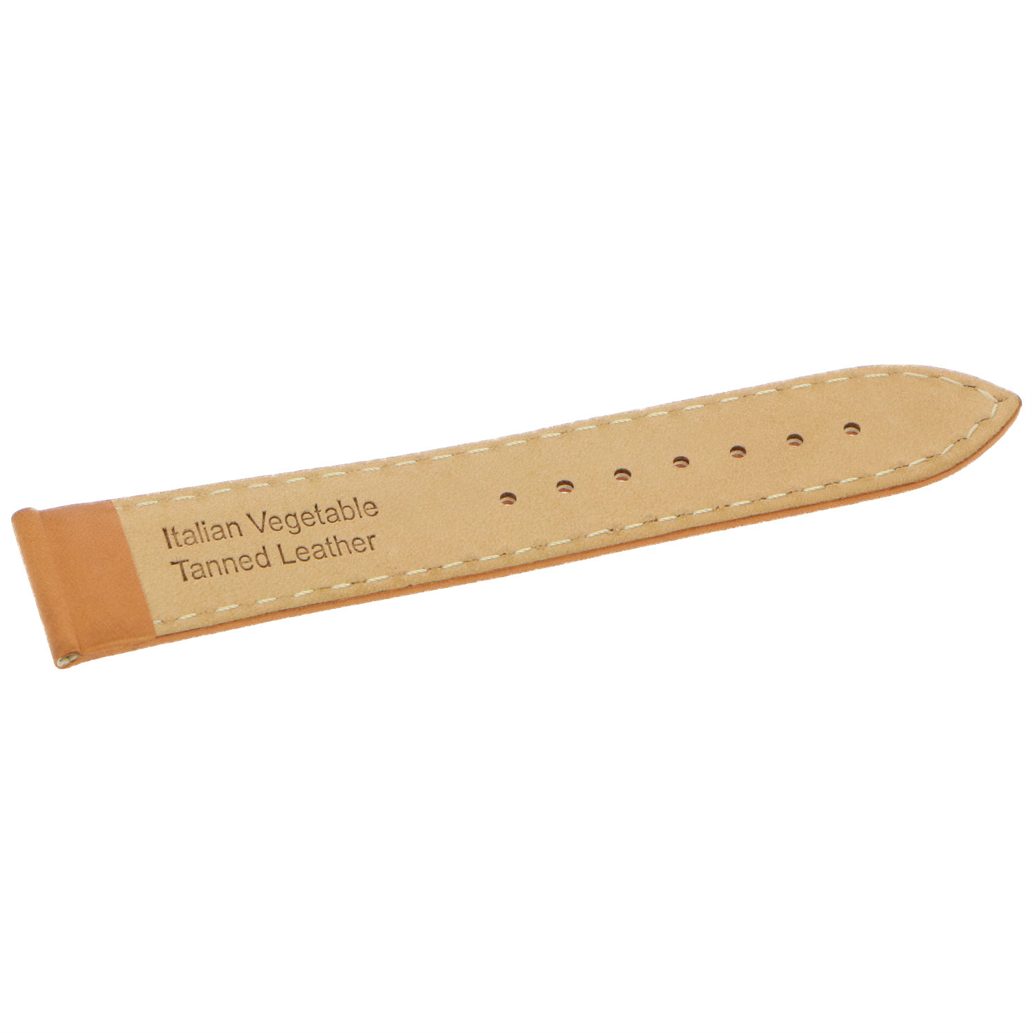 This watch strap is made of Italian vegetable tanned leather from Tuscany and is fitted with a polished stainless steel buckle. It comes in a half padded style with stitching and has multiple holes for easy length adjustment. The leather watch strap flaunts long lasting durability and is excellent as a replacement part for watches.