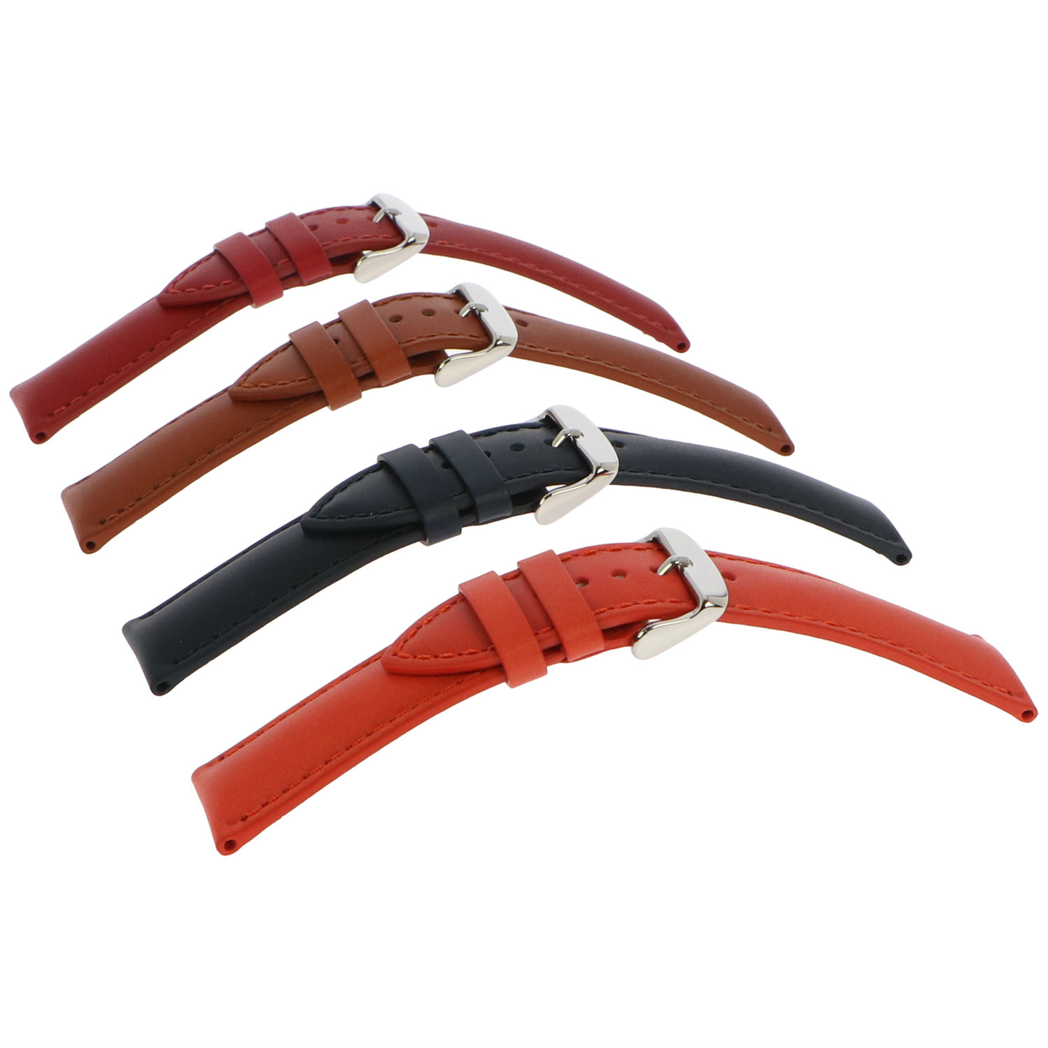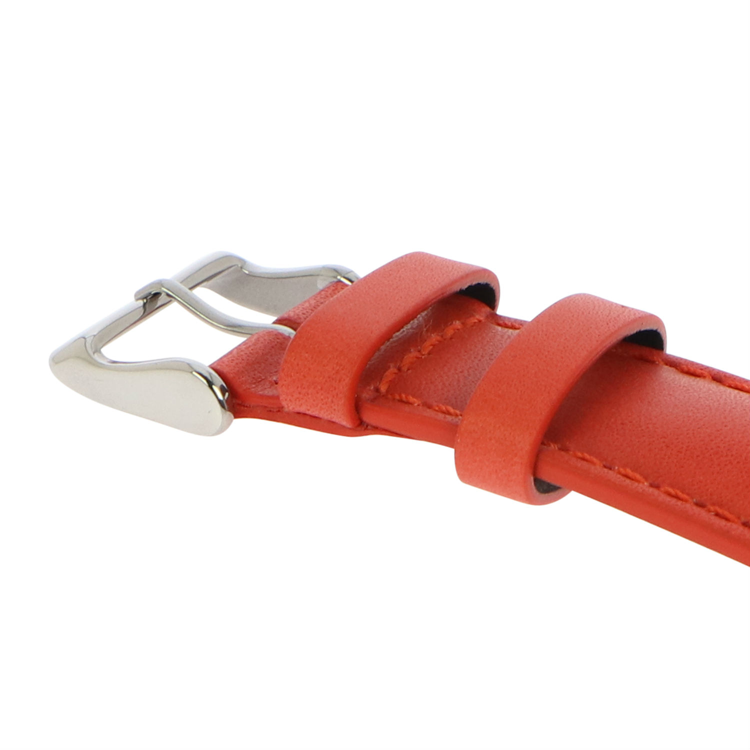 Watch strap in cut edge, padded style with stitching.