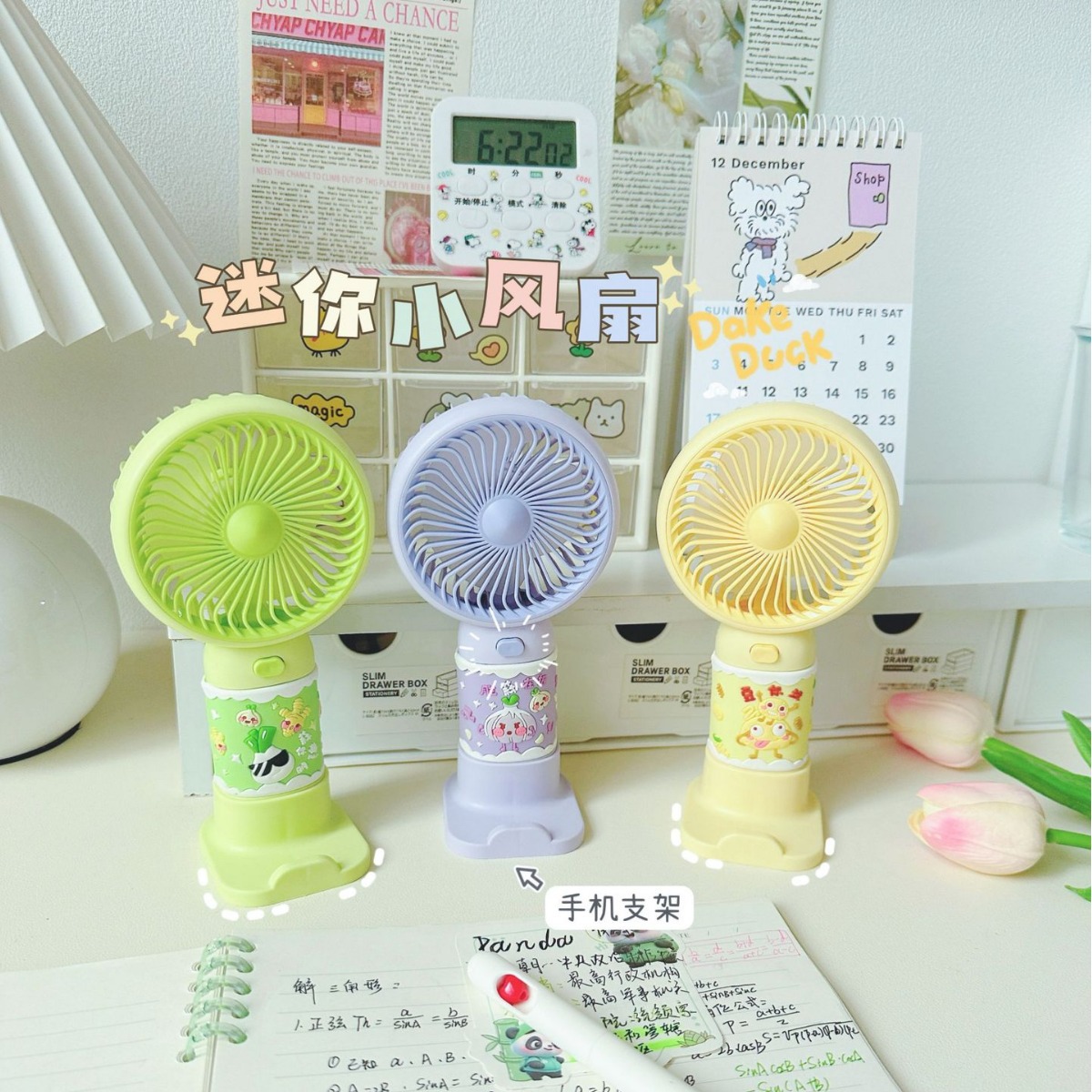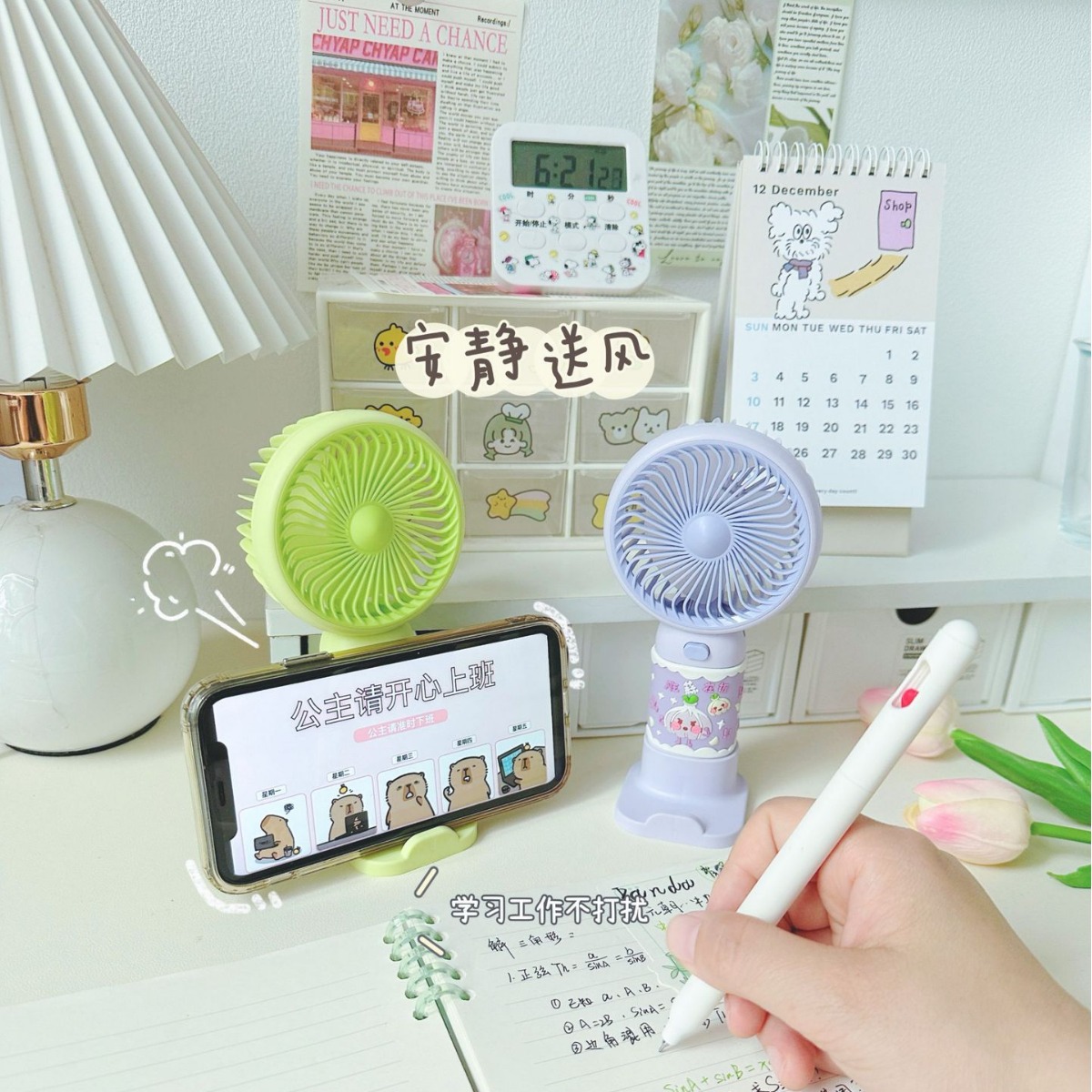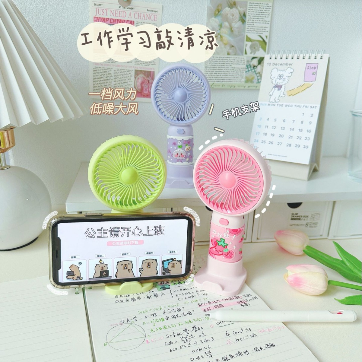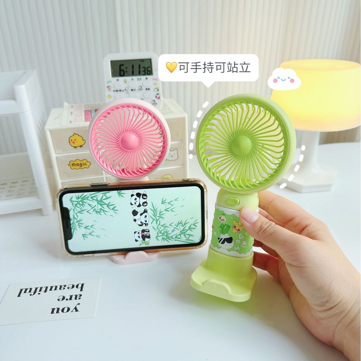 [Applicable scenarios]: Suitable for multiple scenarios, stable and not shaking, suitable for bedside, dormitory bedside, bookshelves, strollers, etc. No matter where you are at this time, we will drive away all the sultry heat for you.