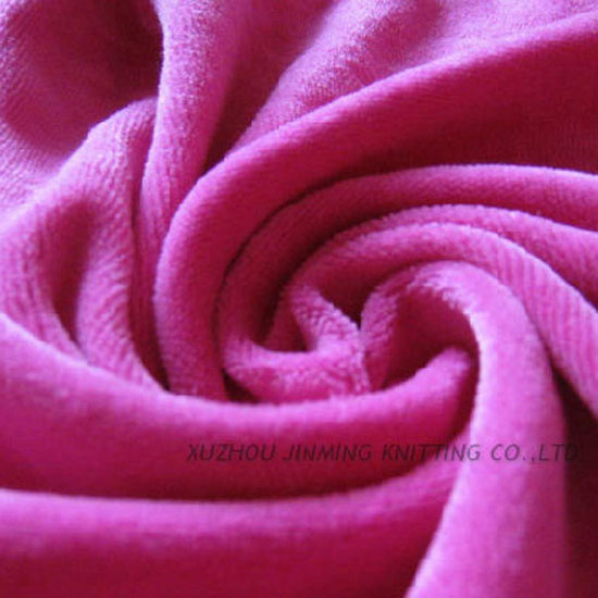 Featured here is a soft velour fabric designed in solid pink color. This material is suitable for producing fall and winter garments. Its comfortable texture and beautiful color delights female consumers.