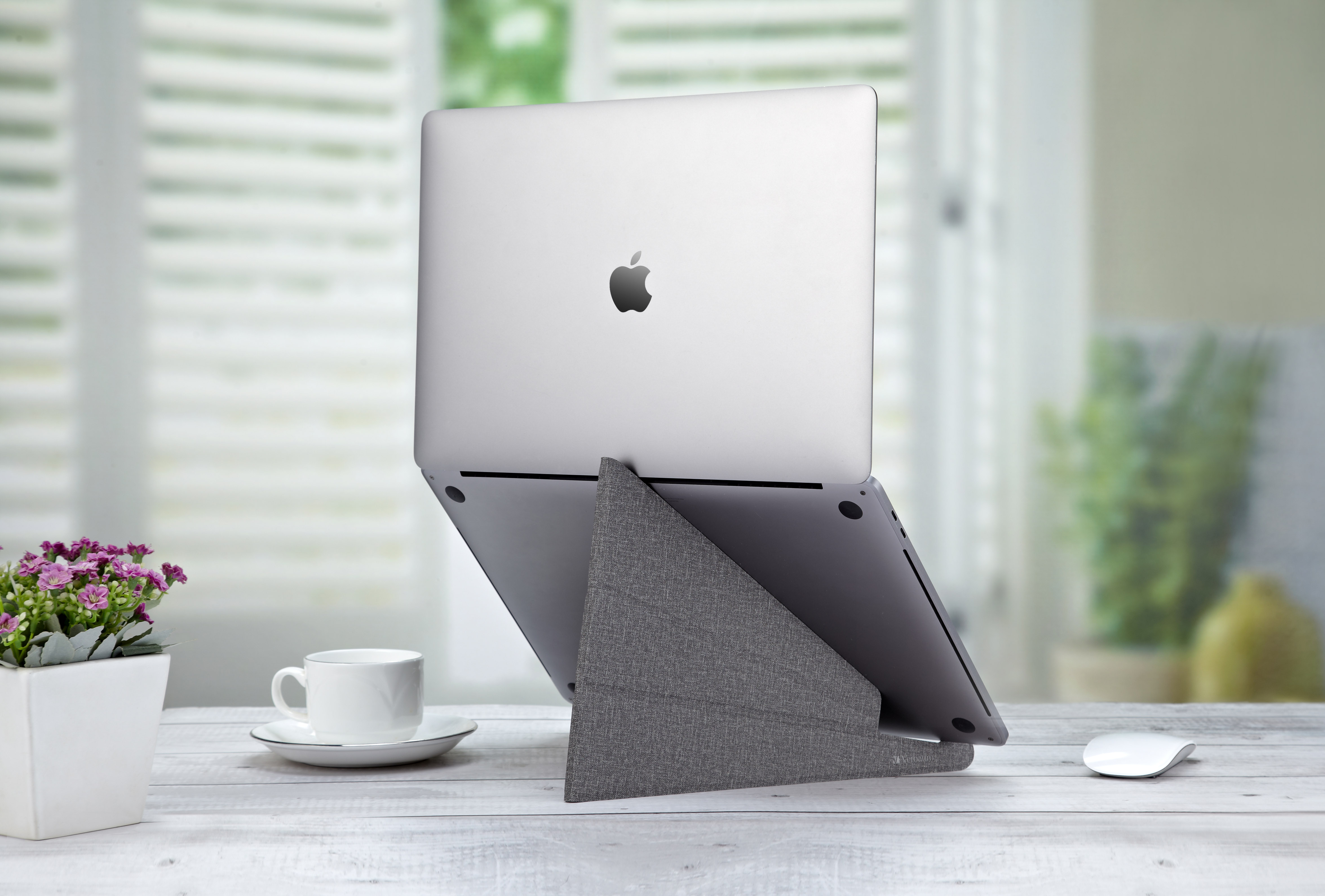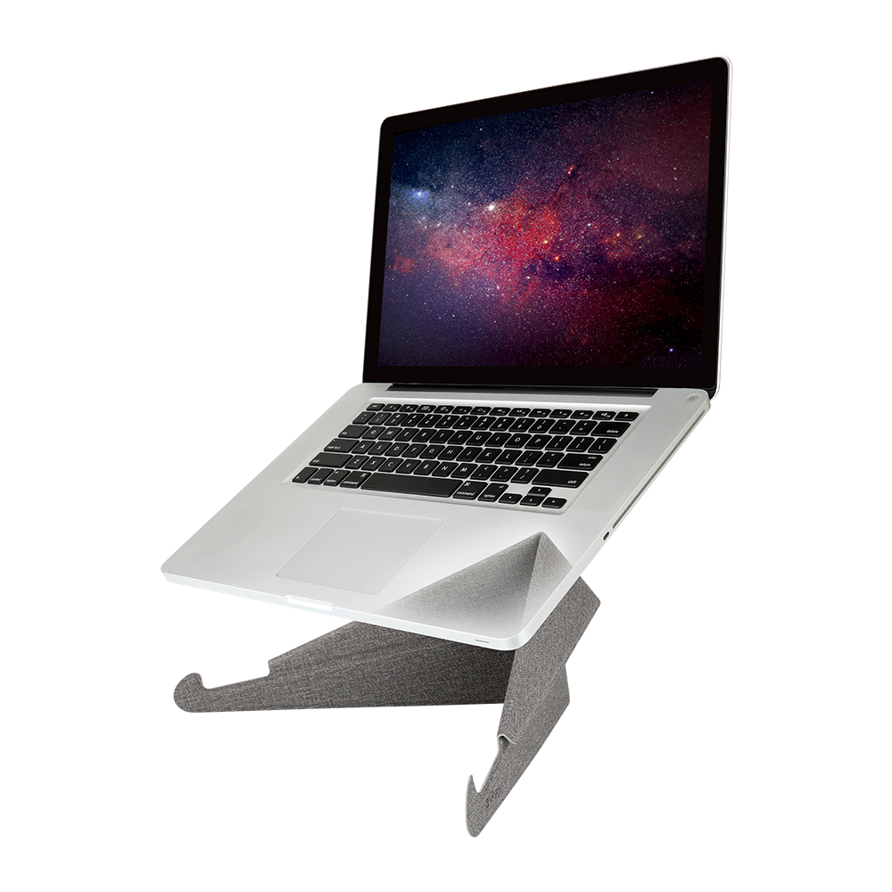 Laptop stand uses durable glass fiber material that is lightweight, stable and portable. The folding design is easy to store and carry.