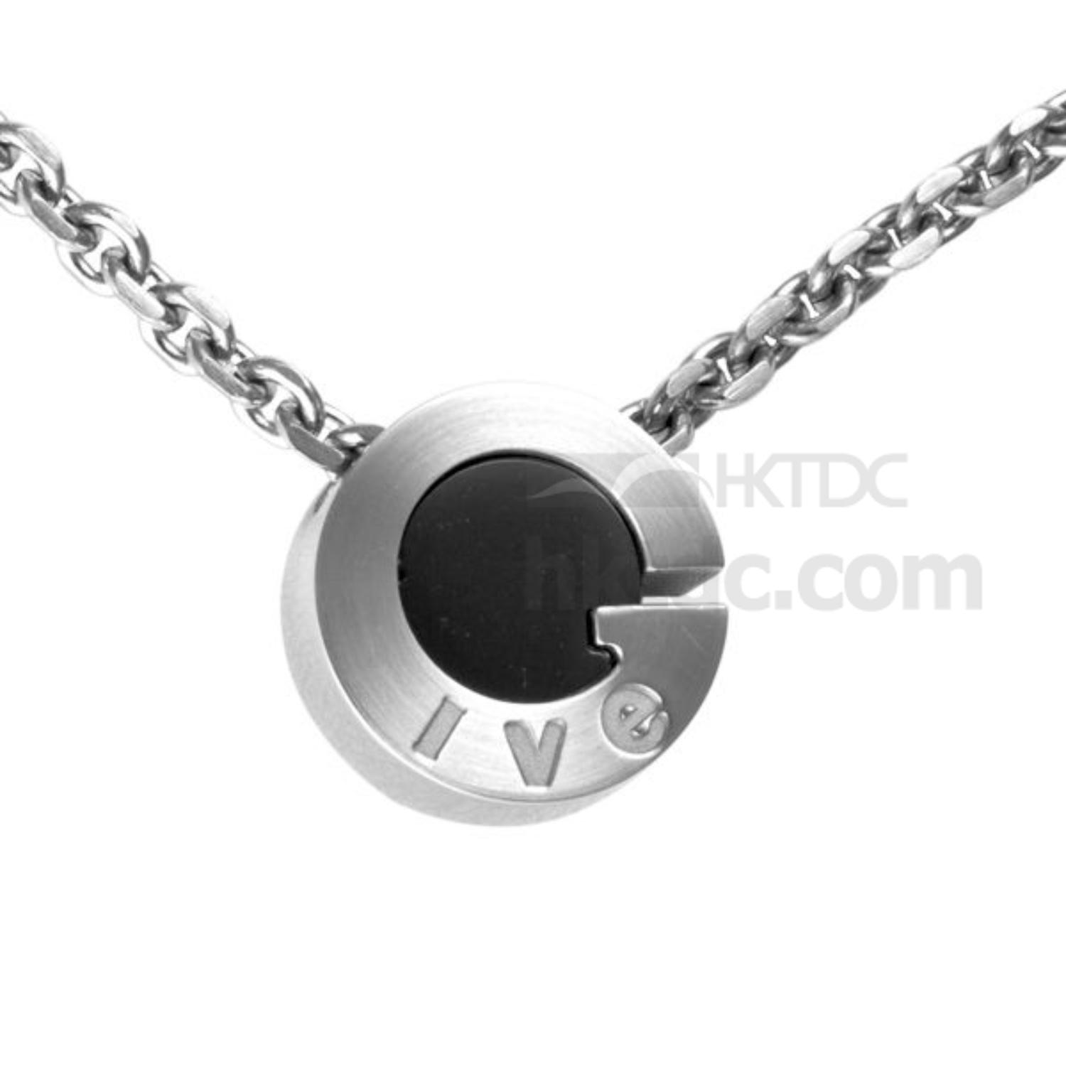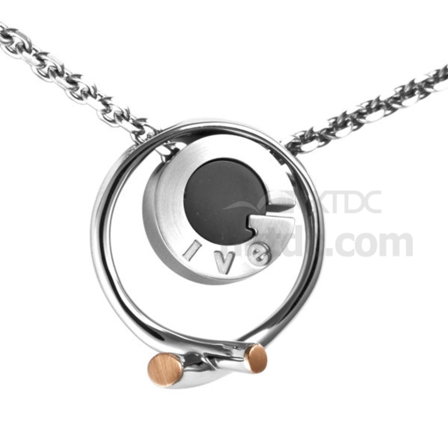 Introduced here is a stainless steel pendant with a removable ring, which bears similarity to a string loop. This shiny accessory comes with a small, round pendant at the center, while etched details are seen on it for added appeal. Users can easily detach the outer ring according to their needs.