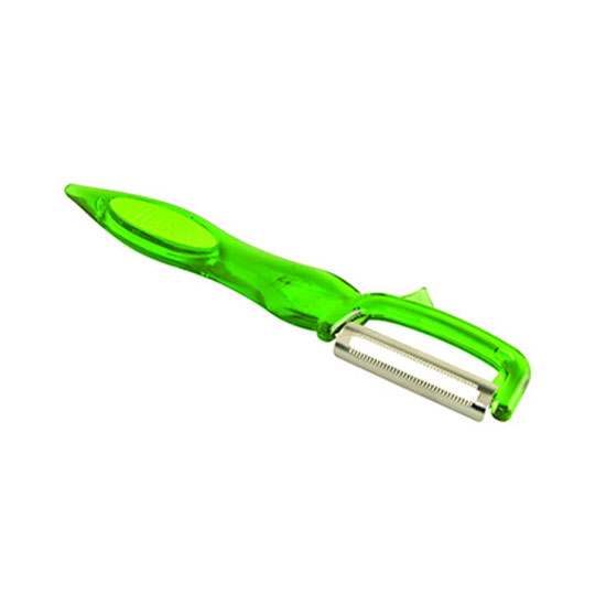 This vertical peeler is designed in bright green for an eye-catching look. It is made of quality materials for durability. This practical peeler is a great choice for kitchen use.