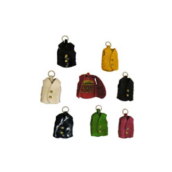 This keychain features a delicate miniature vest. The mini vest is made of cow leather for a soft texture. Inside the vest is a set of key holders to keep the keys well-organized.