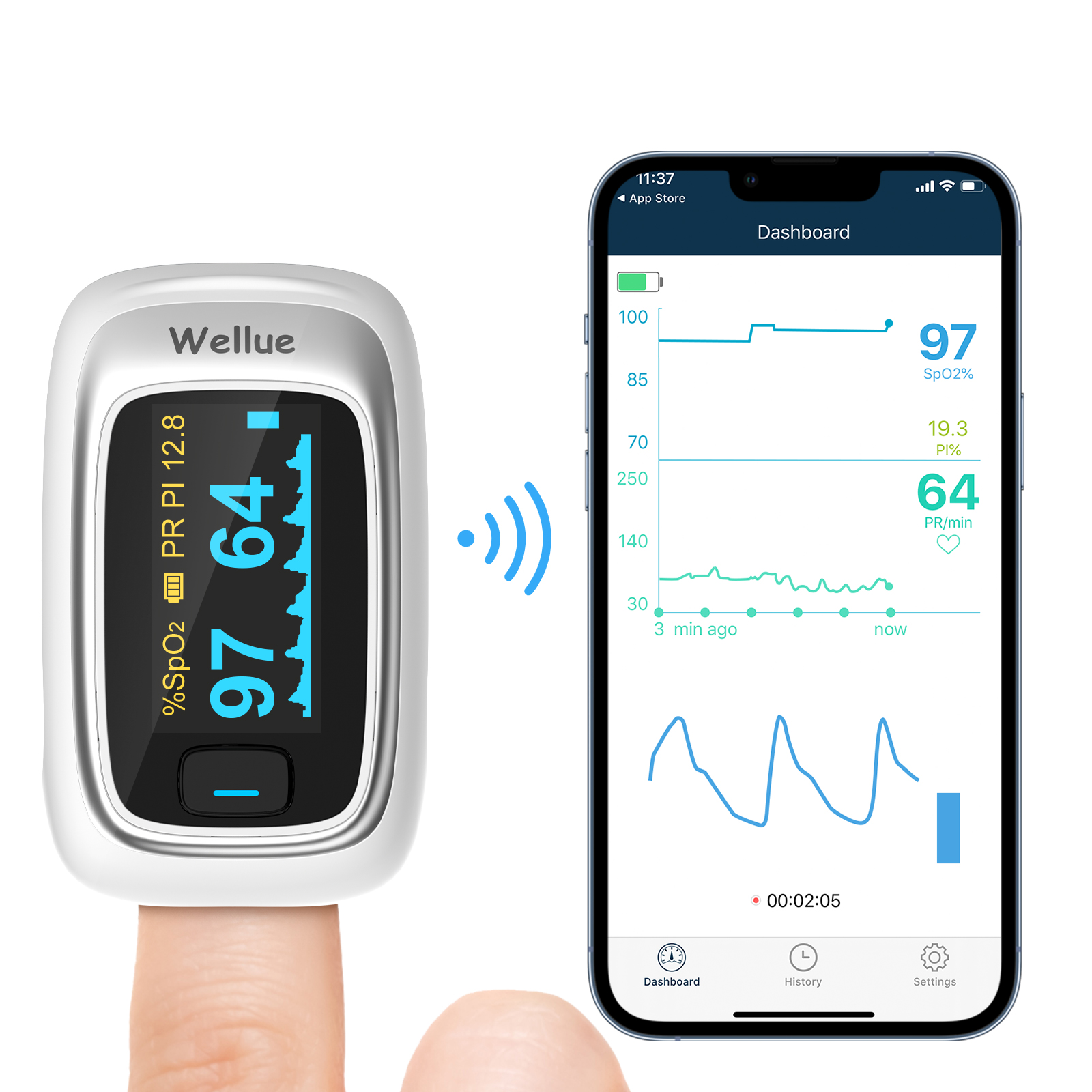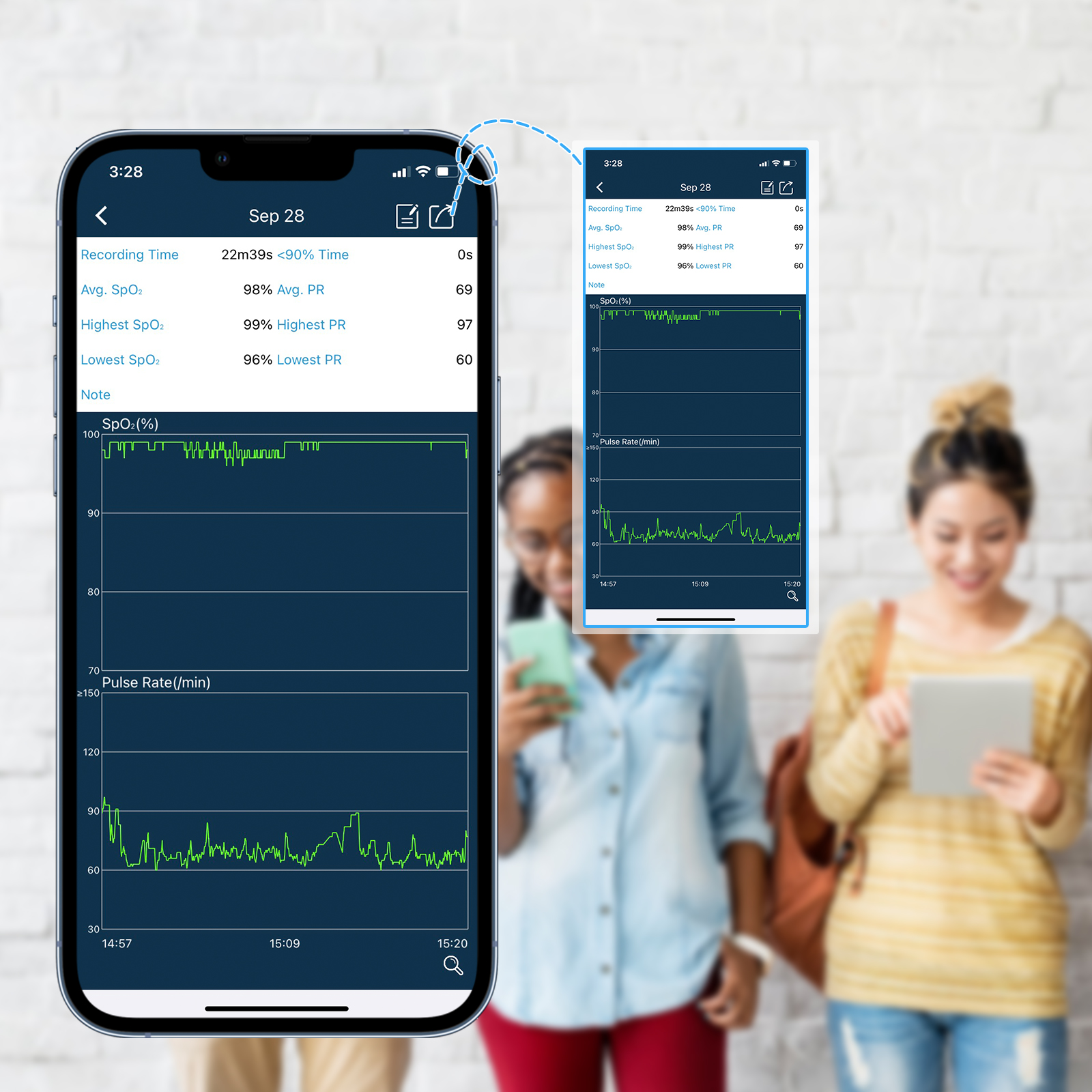 measuring the pulse rate and functional oxygen saturation (SpO2) through a user’s finger.