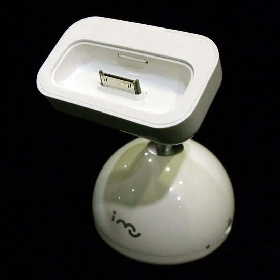 Featured here is an authorized Apple docking station for iPod and iPhone serial charging and audio amplifying. It comes with a hemispherical base for desktop use. The simplistic shape and design delight many users.