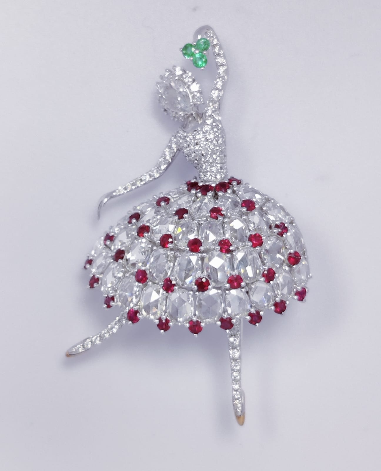 - The interplay of diamonds, rubies, and emeralds creates a vibrant yet timeless aesthetic, perfect for both formal occasions and celebratory moments.