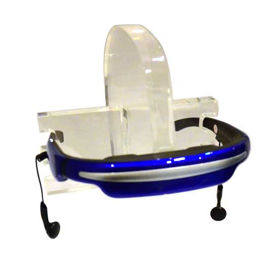 This is a pair of video glasses with a futuristic and innovative design. These glasses allow you to enjoy a wonderful movie anywhere. The lightweight and portable glasses offer a comfortable and custom fit.
