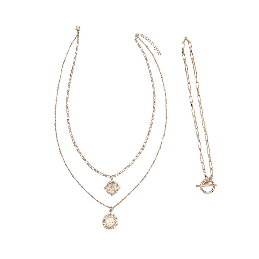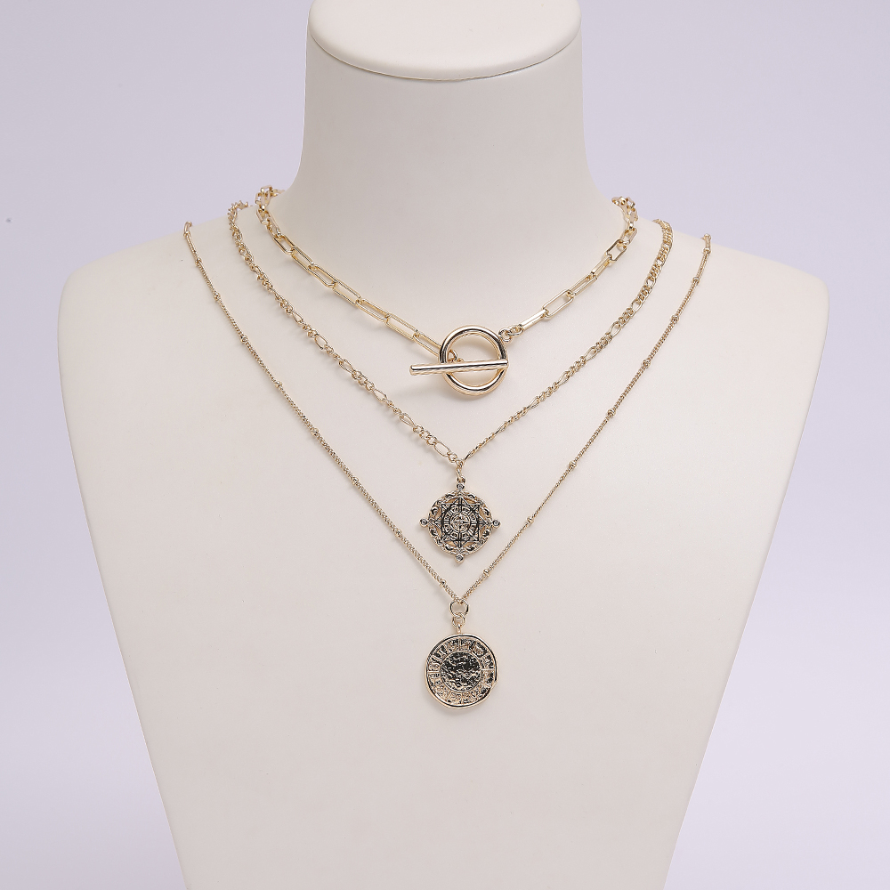 Vintage Alloy Gold Plated Multi-layer Geometry Round Coin Pendant Necklace Jewelry For Women Wholesale 2022