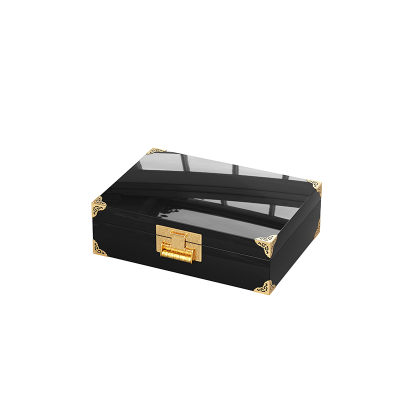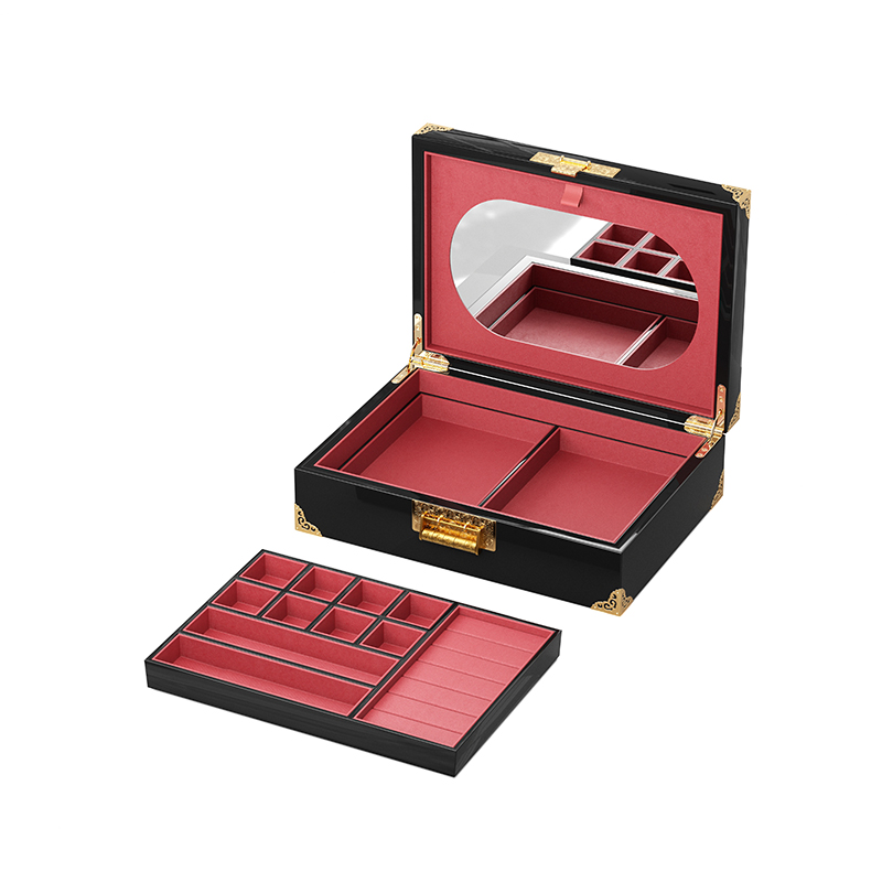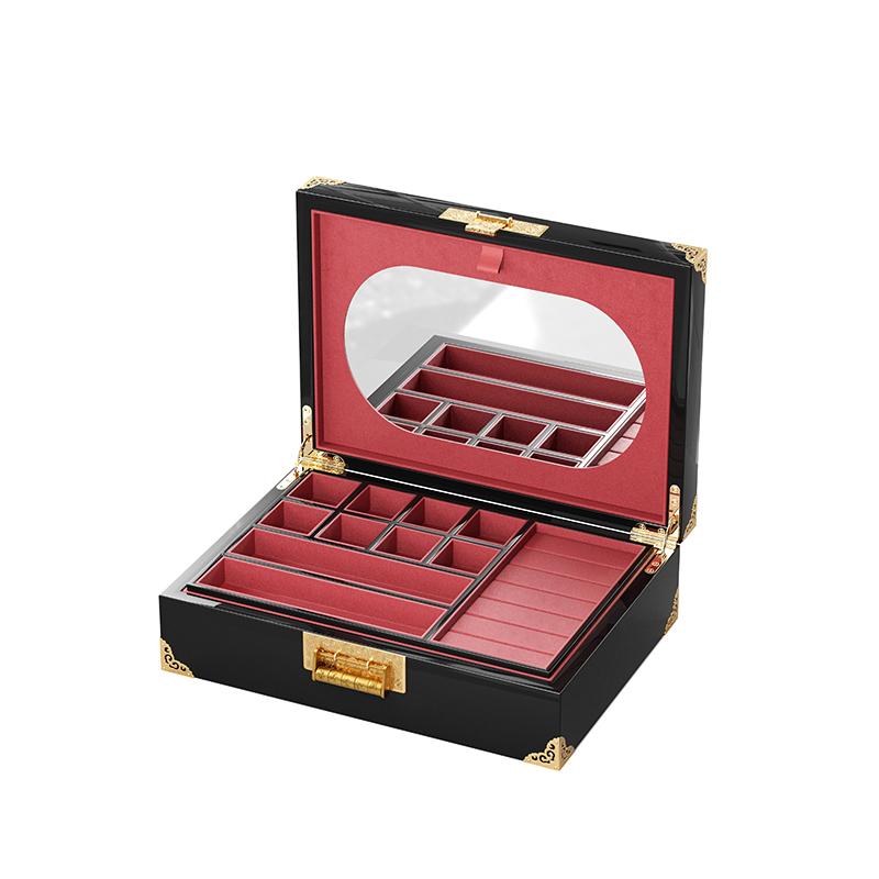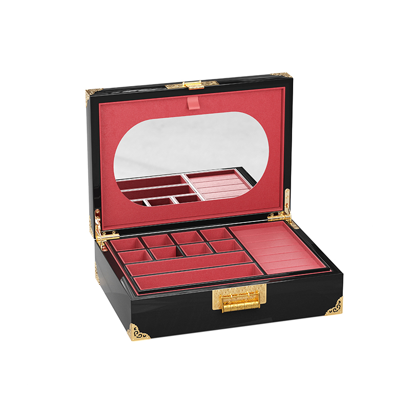 Inspired by old-world apothecaries, this jewelry chest features reinforced brass corner protectors for a touch of timeless durability. The antique-style hardware and classic silhouette offer a nostalgic charm, securely storing your collection with a sense of heritage and craftsmanship.