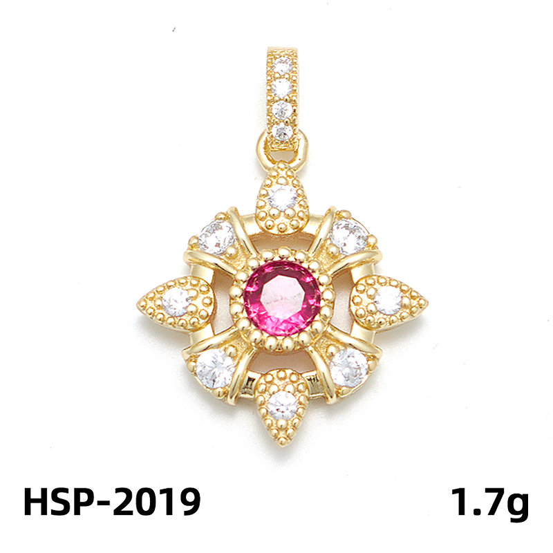 14k gold plated with white cz and synthetic red corundum