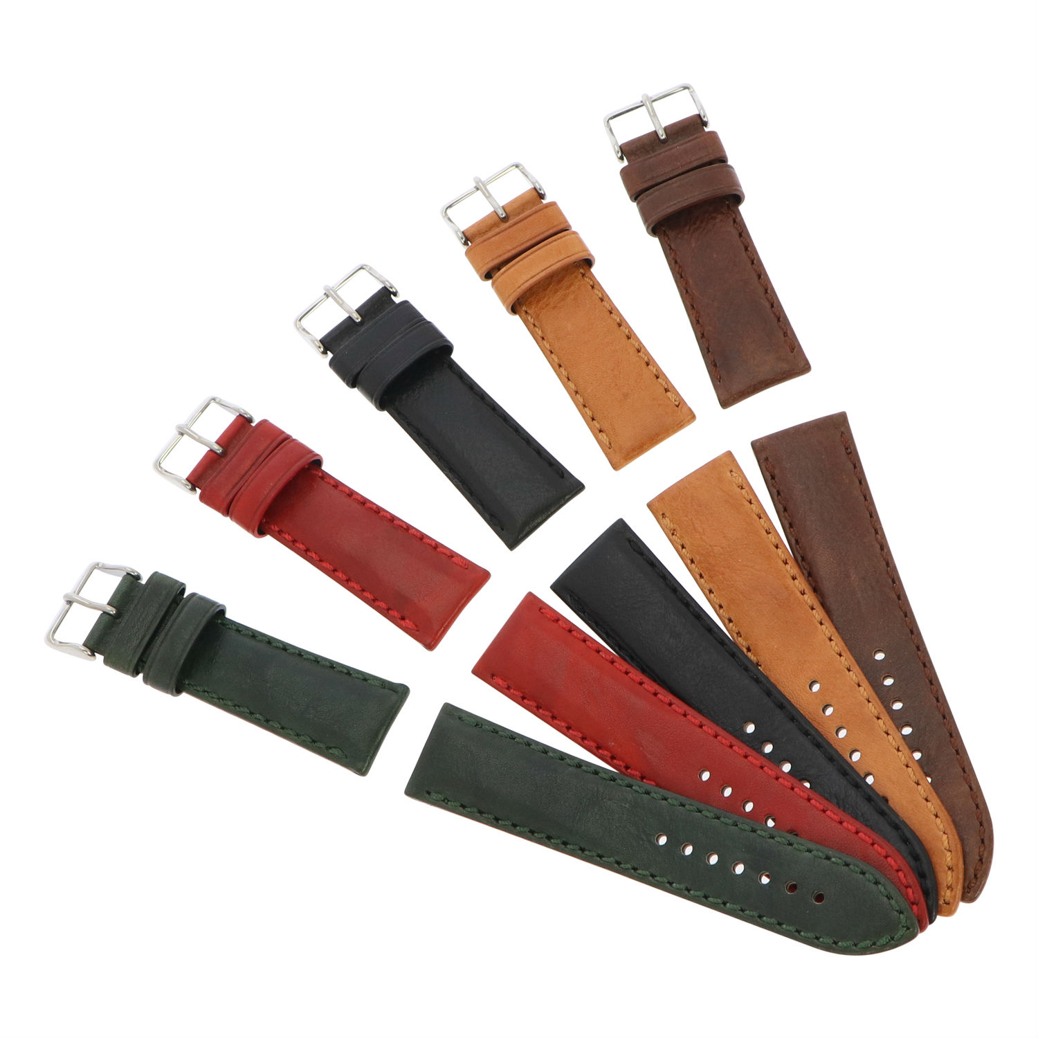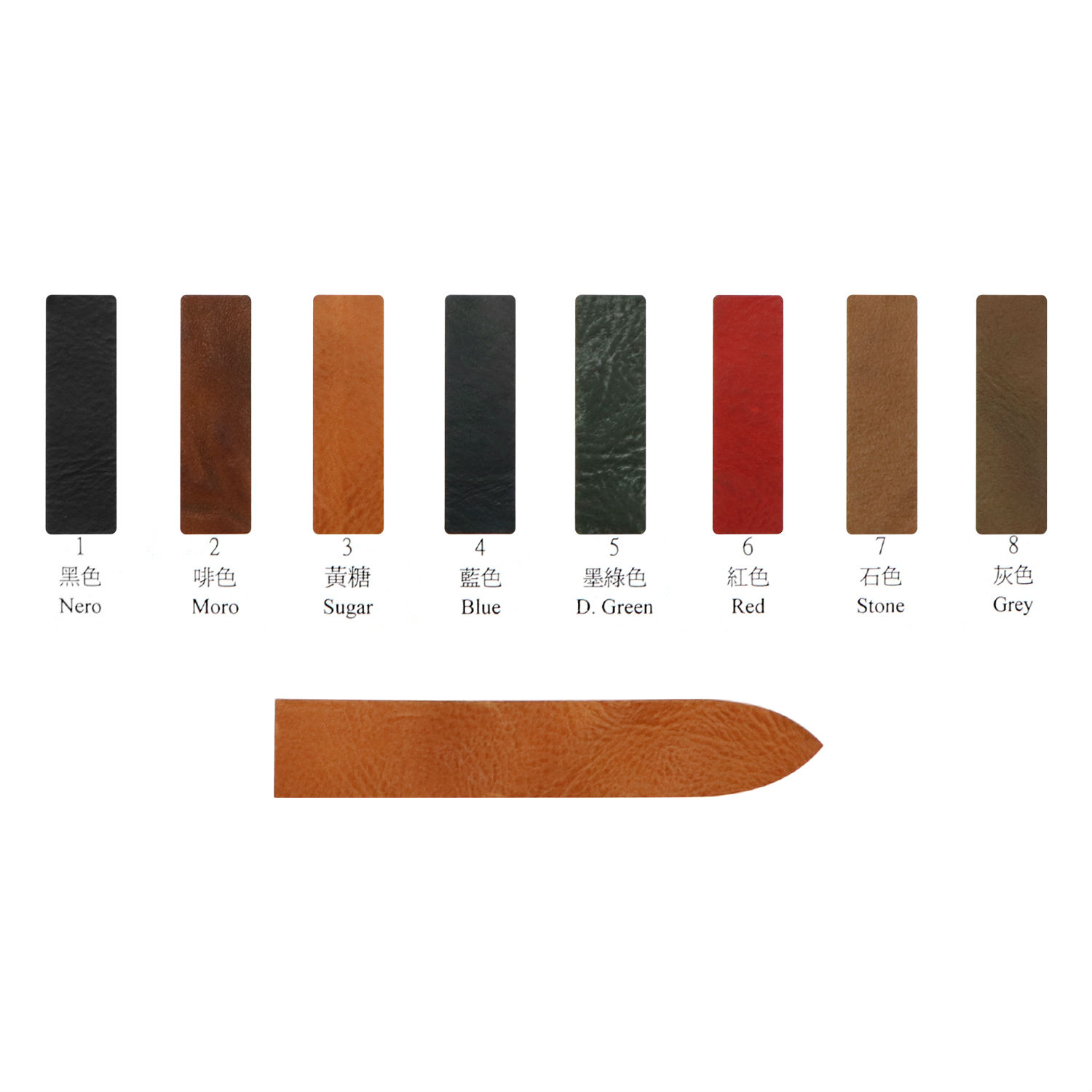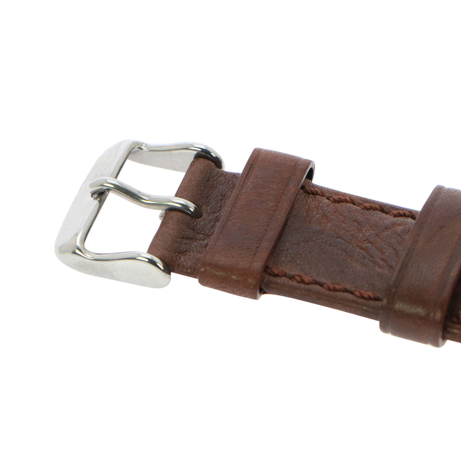 - Matched to a polished stainless steel buckle #8 and two loops.