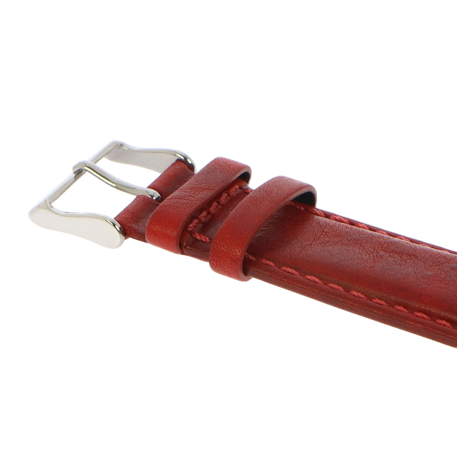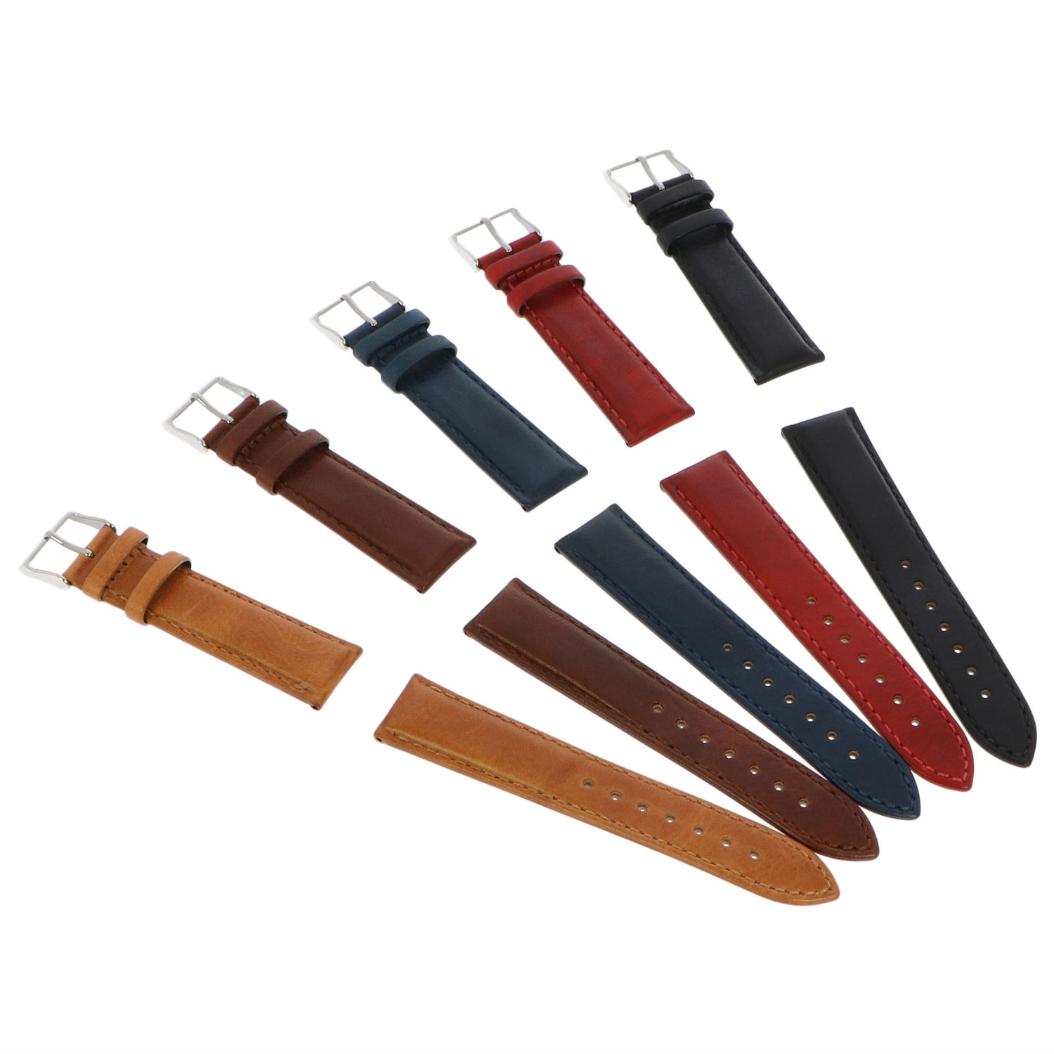 This watch strap is made of Italian calf leather with wrinkle surface texture in semi-gloss finish. It comes in semi-turn edge, half padded style with stitching and is perfect for matching a vintage look. The watch strap has a polished stainless steel buckle and has multiple holes to provide an adjustable and comfortable fit.
