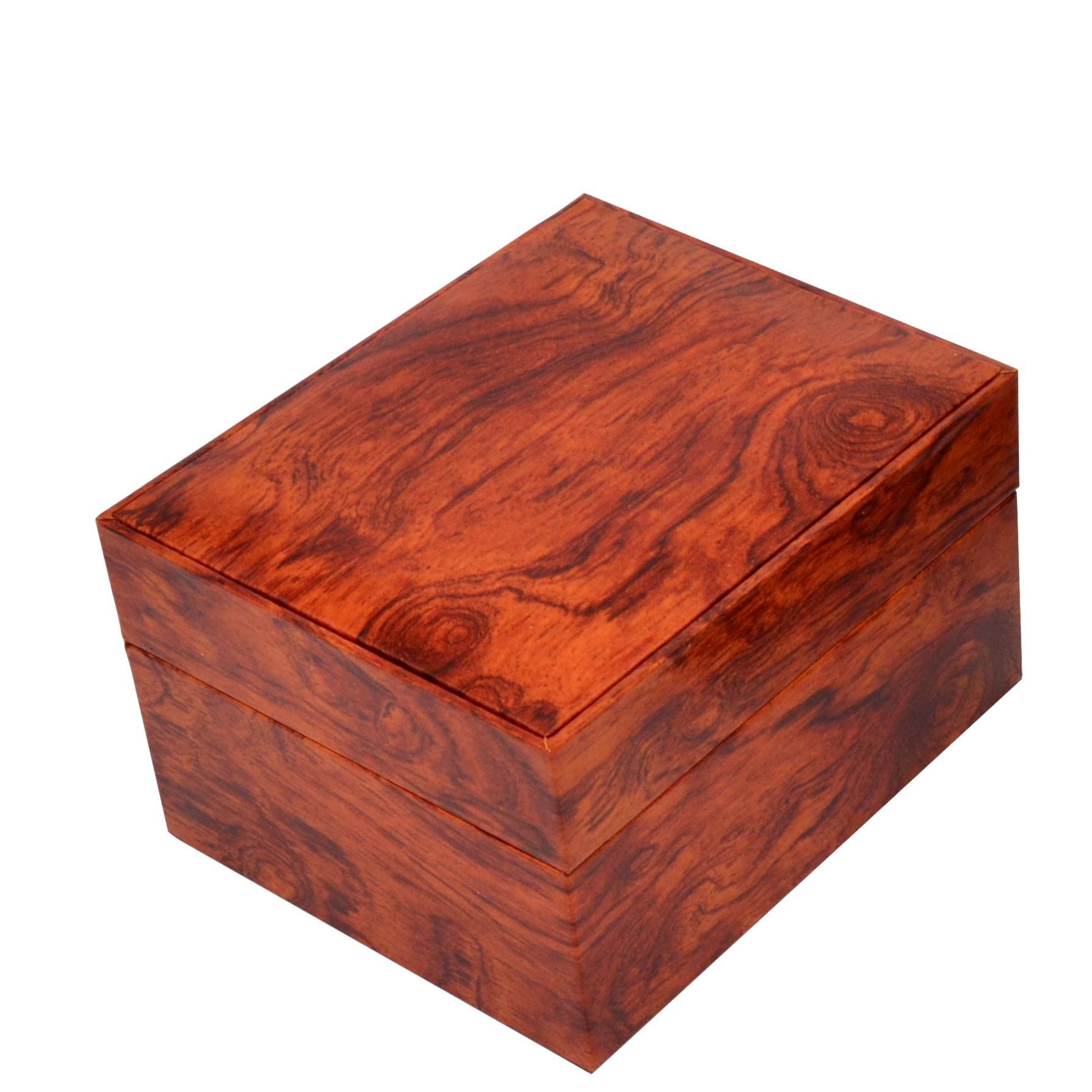 This wooden box watch box is crafted using MDF wrapped wood grain paper on the outside and velvet on the inside. The wood grain paper is visually rich with clear grain patterns and a lustrous texture that highlights the best of the designer's inspirations. The texture of the wood grain paper gives this watch box a vintage and advanced temperament.Preferred log wood texture clear, texture warm graceful, introverted, calm and stable so that appliances appear more elegant atmosphere. The beauty of the visible details, craftsmanship handmade, only for the discerning you.