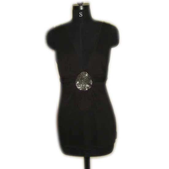 The halter top features a V-neck and sleeveless design. The top is draped and gathered with a beaded brooch for a beautiful finishing touch. This halter top surely will enhance your closet with a sense of endless elegance.